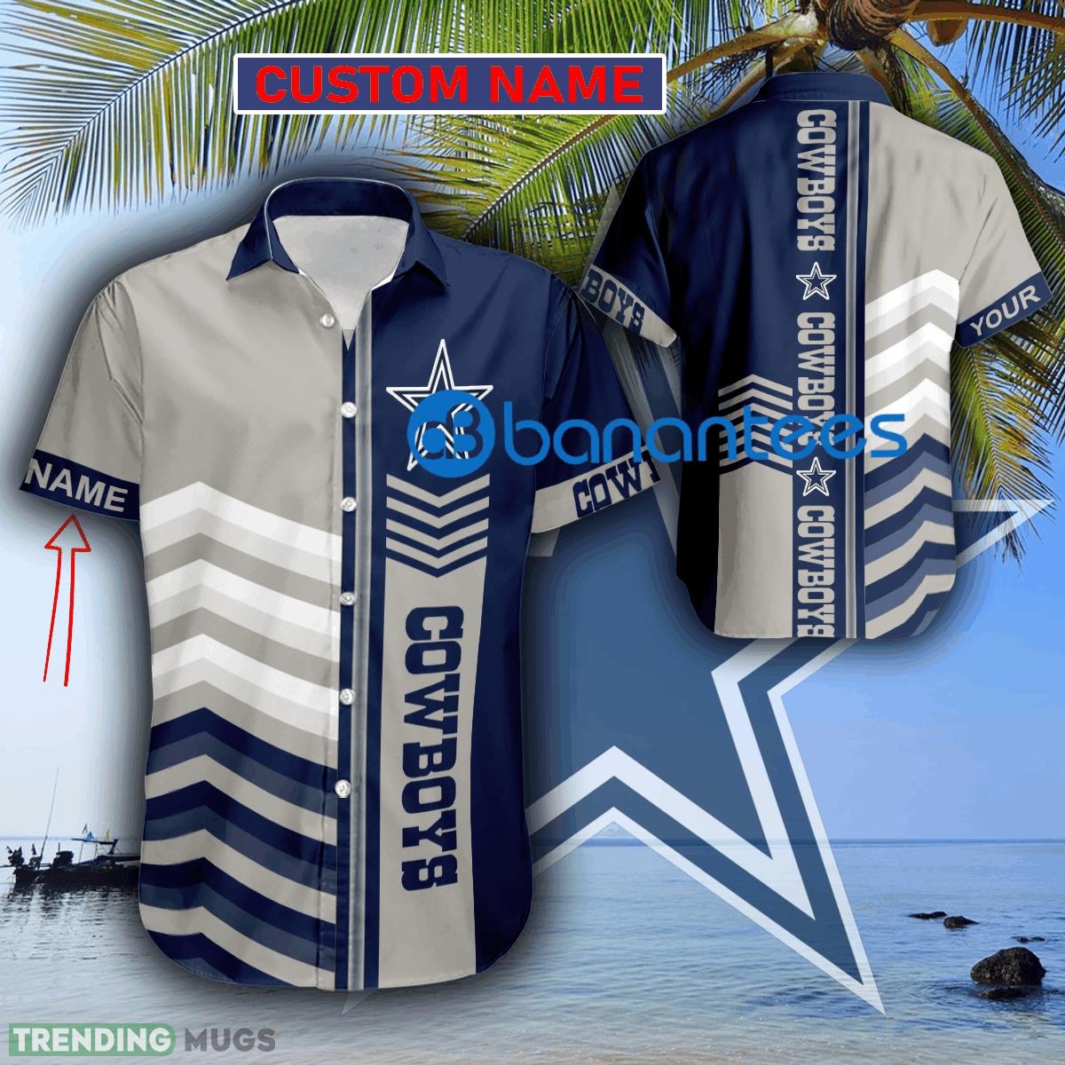 Featuring the iconic Dallas Cowboys logo, this Hawaiian shirt is a must-have for any die-hard fan. But what sets it apart is the ability to customize it with your own name! Stand out from the crowd and proudly display your allegiance to America’s Team with a personalized touch.