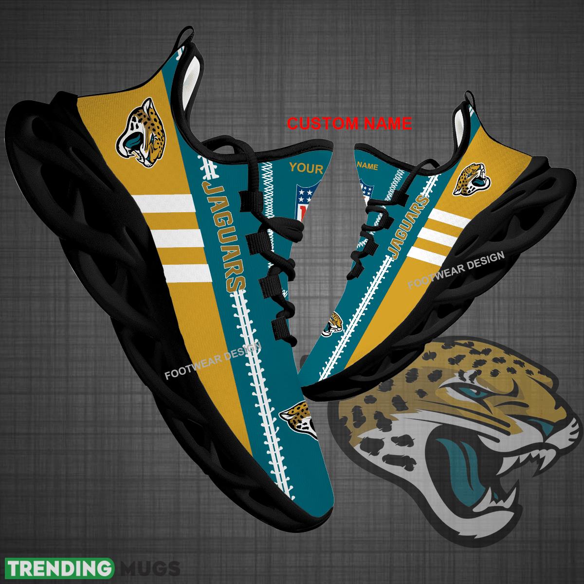 Show off your team pride with the Custom Name NFL Jacksonville Jaguars Logo New Max Soul Shoes! These stylish sneakers are perfect for big fans who love to show their support while staying active. Whether you’re hitting the gym or going for a run, these shoes are sure to turn heads. Plus, with the option to customize them with your name, you can truly make them your own. Treat yourself or surprise a fellow Jaguars fan with the perfect gift. Get your hands on these exclusive sneakers today and take your fandom to the next level!