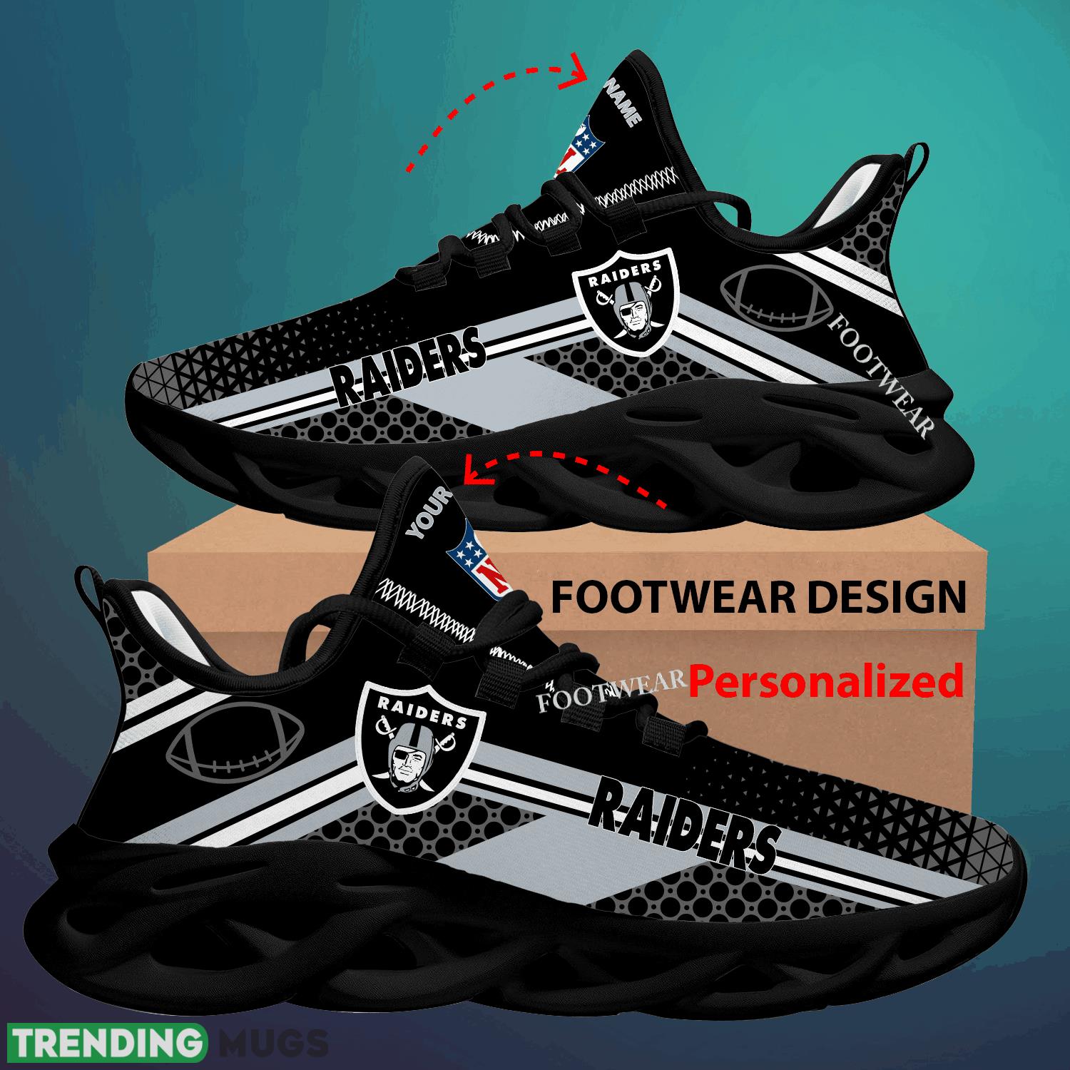 Get ready to show off your team spirit with our Custom Name NFL Las Vegas Raiders Max Soul Shoes! These sneakers are perfect for big fans who want to represent their favorite team while staying comfortable and stylish. Whether you’re going for a run or just running errands, these shoes are the perfect gift for any die-hard Las Vegas Raiders fan. Personalize them with your name and stand out from the crowd. Don’t miss out on these must-have sneakers for the upcoming season!