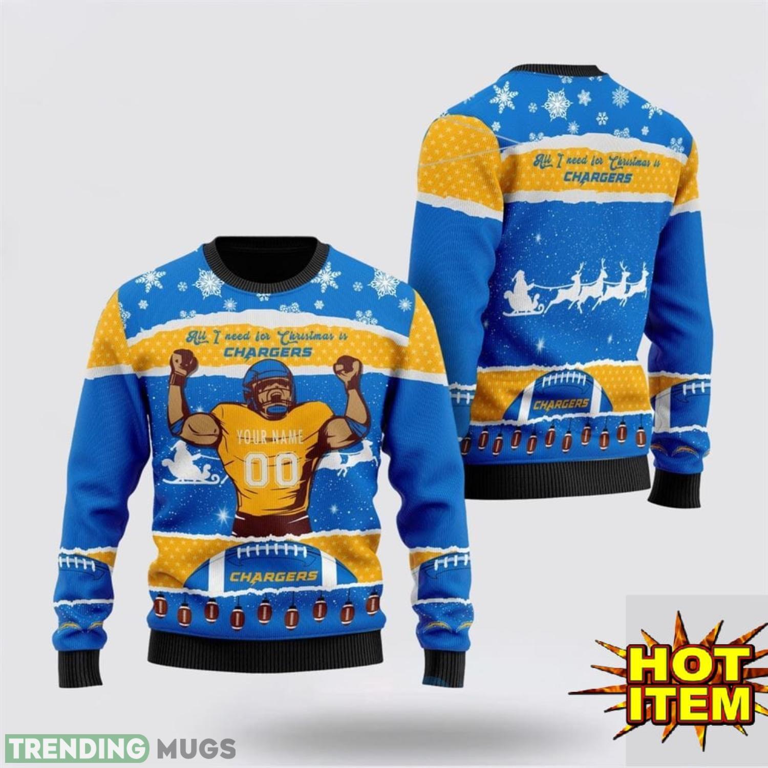 Custom Name NFL Los Angeles Chargers All I Need For Christmas Ugly Christmas Sweater Sport Fans Gift Informations: