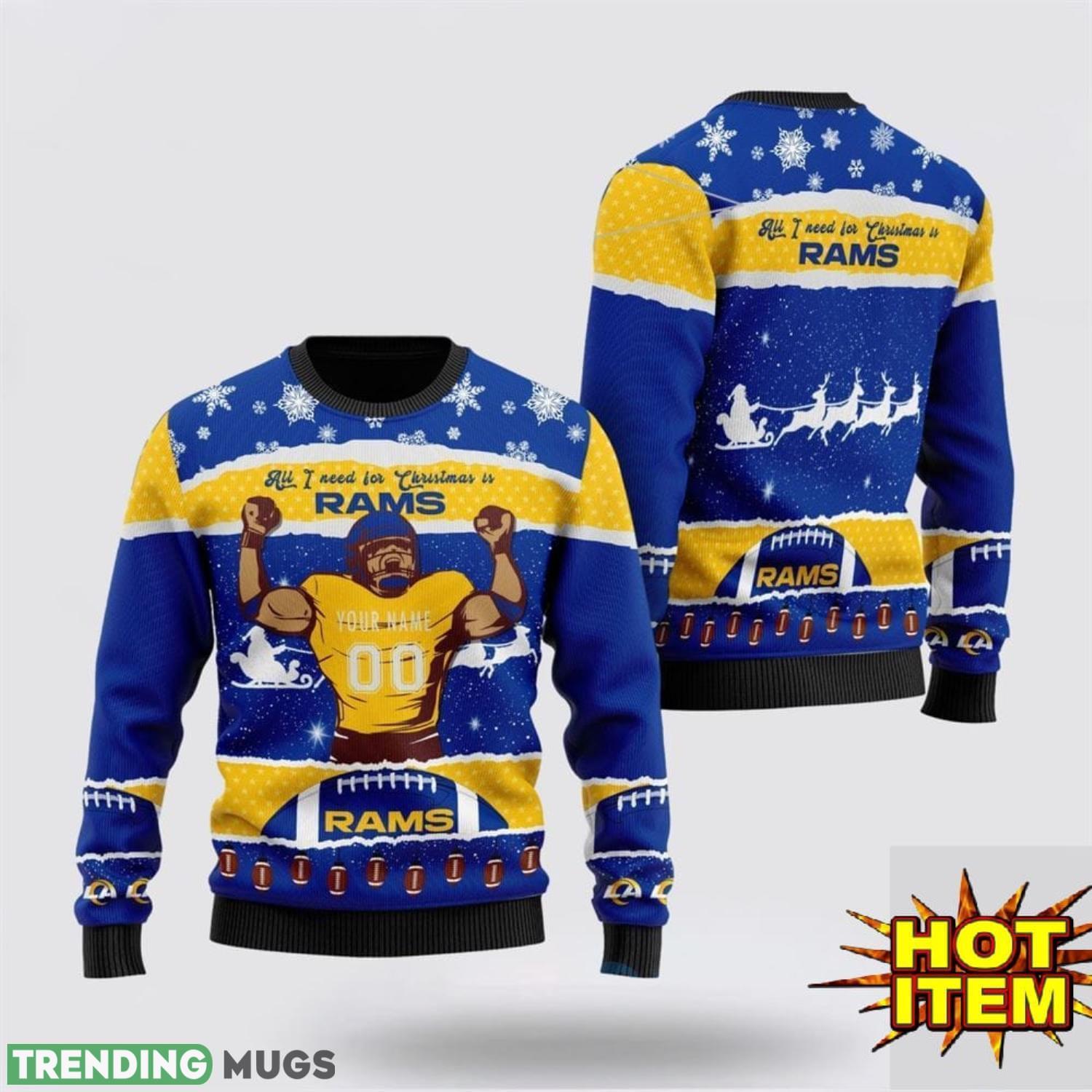 Custom Name NFL Los Angeles Rams All I Need For Christmas Ugly Christmas Sweater Sport Fans Gift Informations: