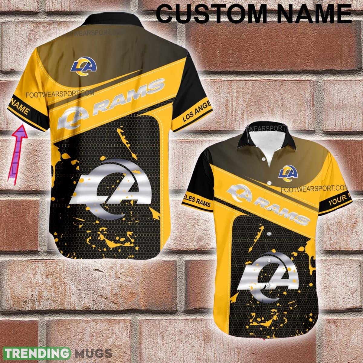 Custom Name NFL Los Angeles Rams Logo Silver AOP Hawaiian Shirt Gift For Fans Details:
