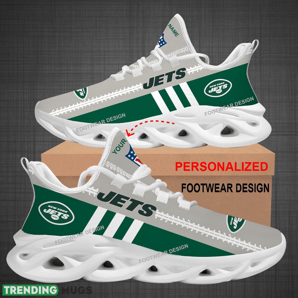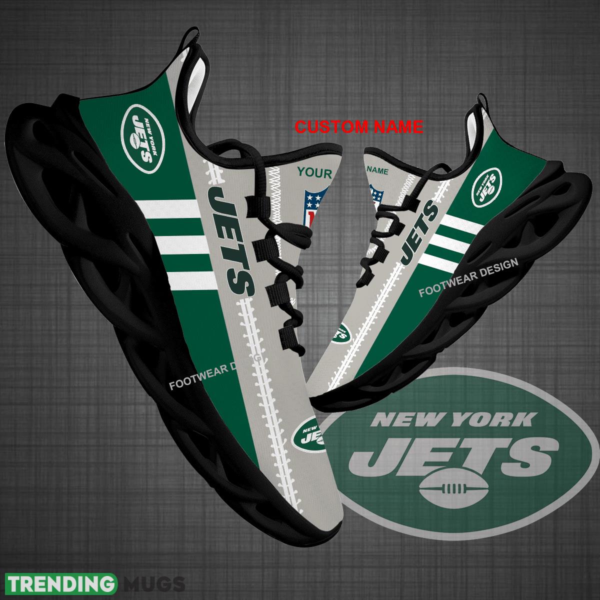 Get ready to show off your love for the New York Jets in style with our Custom Name NFL New York Jets Logo New Max Soul Shoes. These sneakers are perfect for big fans who want to represent their favorite team while staying comfortable during all their runs and workouts. With a sleek design featuring the iconic Jets logo and customizable with your own name, these shoes make for the perfect gift for any die-hard fan. Step up your game and stand out from the crowd with our exclusive New York Jets sneakers. Order yours today and take your fandom to the next level!