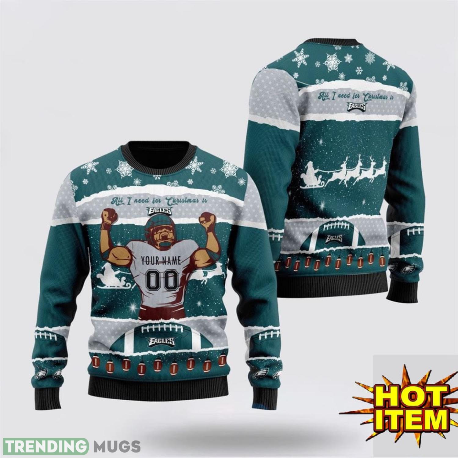 Custom Name NFL Philadelphia Eagles All I Need For Christmas Ugly Christmas Sweater Sport Fans Gift Informations: