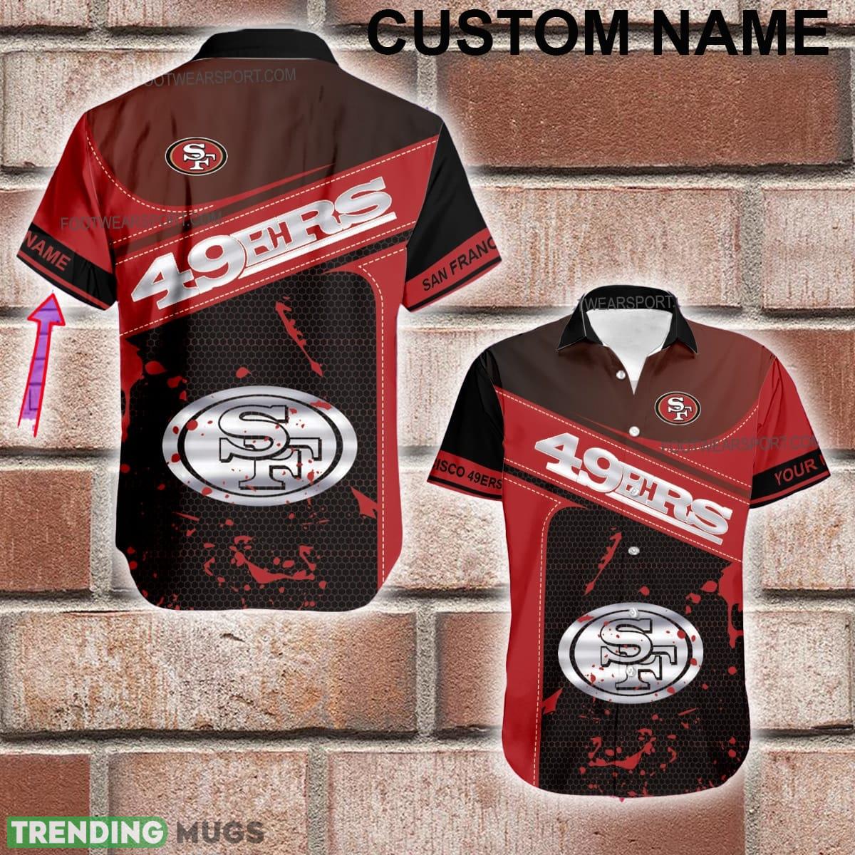 Elevate your game day style with our Custom Name NFL San Francisco 49ers Logo Silver Hawaiian Shirt! Perfect for both men and women, this eye-catching all-over print shirt features the iconic 49ers logo in a sleek silver design. Personalize it with your name to show off your team spirit in a unique way. Whether you’re cheering on the Niners at the stadium or hosting a watch party at home, this shirt is sure to make a statement. Get ready to turn heads and stand out from the crowd with our custom NFL Hawaiian shirt!