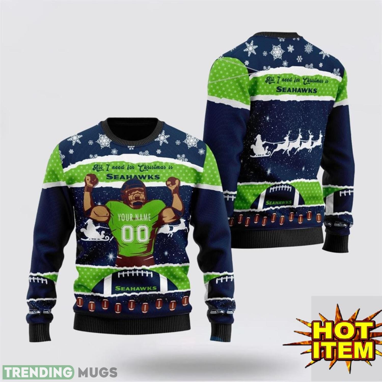 Custom Name NFL Seattle Seahawks All I Need For Christmas Ugly Christmas Sweater Sport Fans Gift Product Photo 1