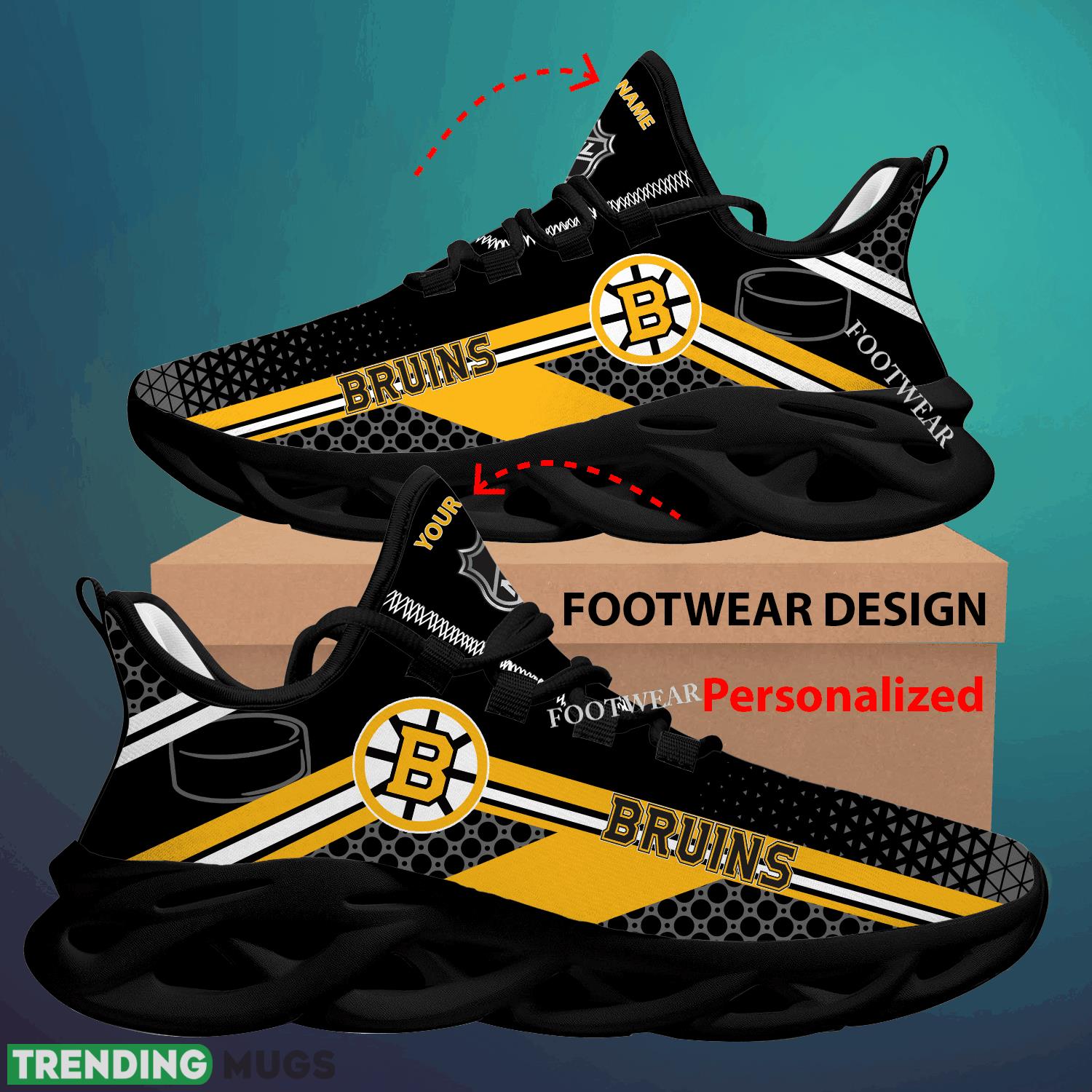 Get ready to show off your love for the Boston Bruins with these Custom Name NHL Boston Bruins Max Soul Shoes! Whether you’re hitting the gym or running errands, these sneakers are perfect for big fans who want to represent their favorite team in style. Made for comfort and durability, these shoes are a great gift for any die-hard Bruins supporter. Add your own personal touch with a custom name to make these sneakers truly one-of-a-kind. Step out in style and support your team with these ultimate fan shoes!