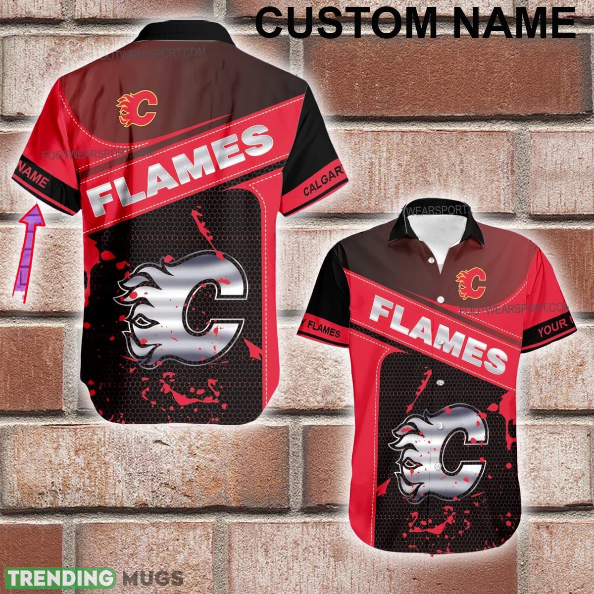 Make a bold statement with our Custom Name NHL Calgary Flames Logo Silver Hawaiian Shirt For Beach. Show off your team pride in style with this eye-catching shirt featuring the iconic Calgary Flames logo. Personalize it with your name to make it uniquely yours. Whether you’re lounging on the beach or heading to a game day party, this shirt is sure to turn heads and make you stand out from the crowd. Stay cool and comfortable while representing your favorite team with this must-have shirt. Order yours today and elevate your game day look!