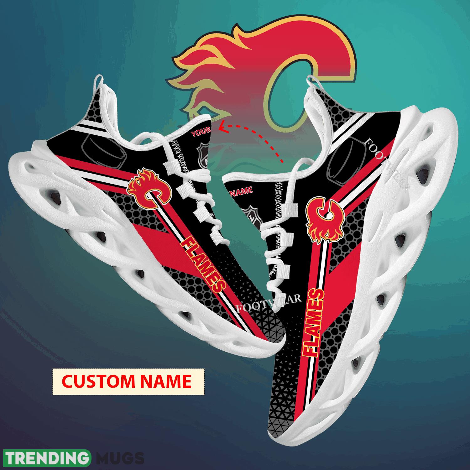 Don’t miss out on the opportunity to stand out from the crowd with our Custom Name NHL Calgary Flames Max Soul Shoes. Order yours today and show your team spirit in style!