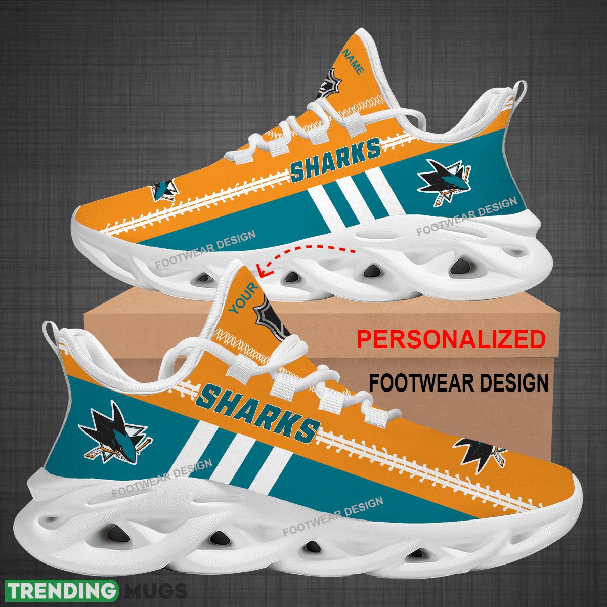 Show off your love for the San Jose Sharks with our Custom Name NHL San Jose Sharks Logo New Max Soul Shoes! These sneakers are perfect for big fans who want to add a personalized touch to their footwear. Whether you’re hitting the gym or just running errands, these shoes will keep you stylish and comfortable. Plus, they make a great gift for any Sharks enthusiast in your life. Don’t miss out on these unique and eye-catching sneakers – order yours today!