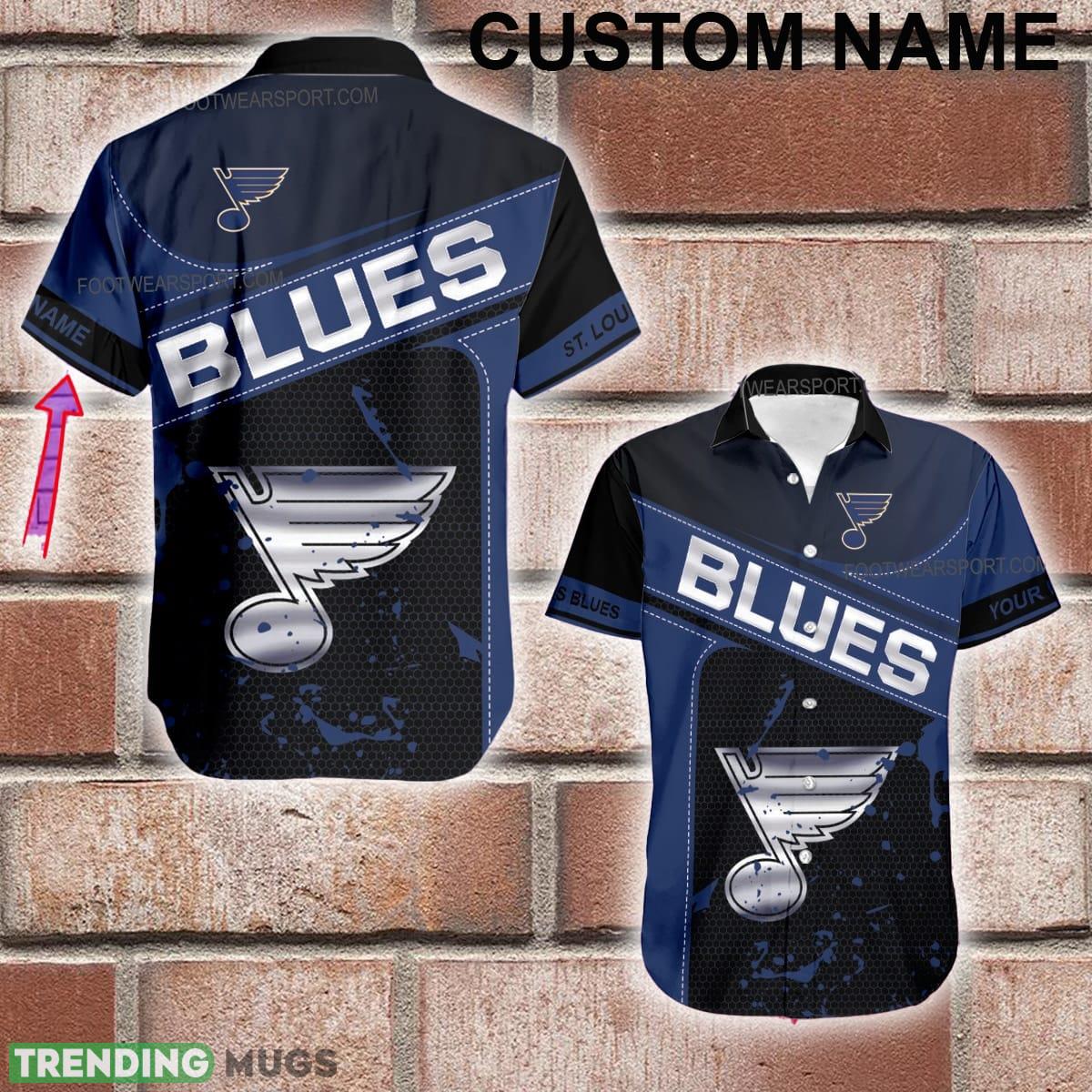Some of the Custom Name NHL St. Louis Blues Logo Silver Hawaiian Shirt All Over Print Gift For Fans photos