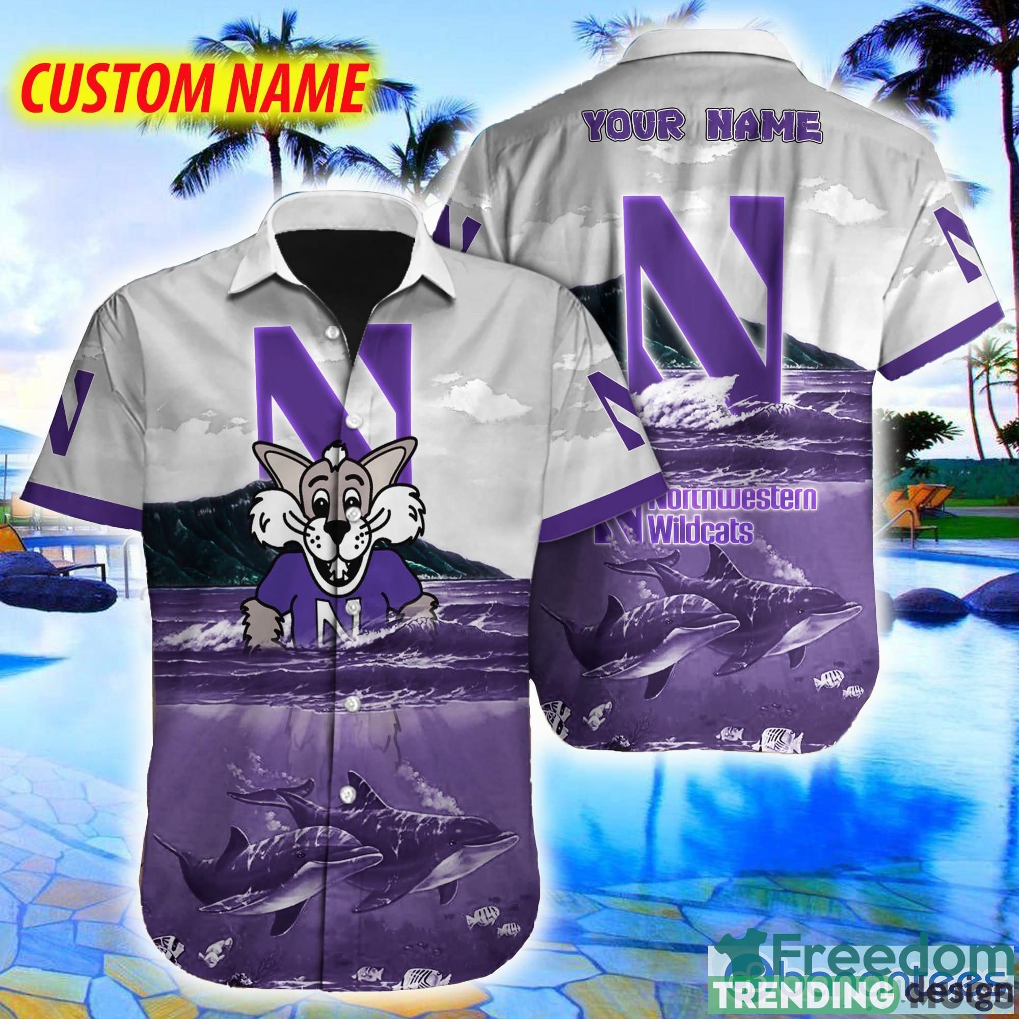 Custom Name Northwestern Wildcats NCAA Logo Dolphin Beach Funny Hawaiian Shirt Details: