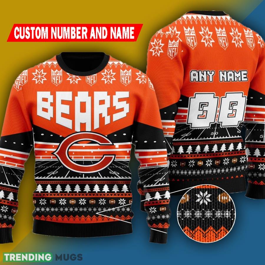 Get ready to show off your team spirit this holiday season with our Custom Name Number NFL Chicago Bears Rugby Stadium Ugly Christmas Sweater!