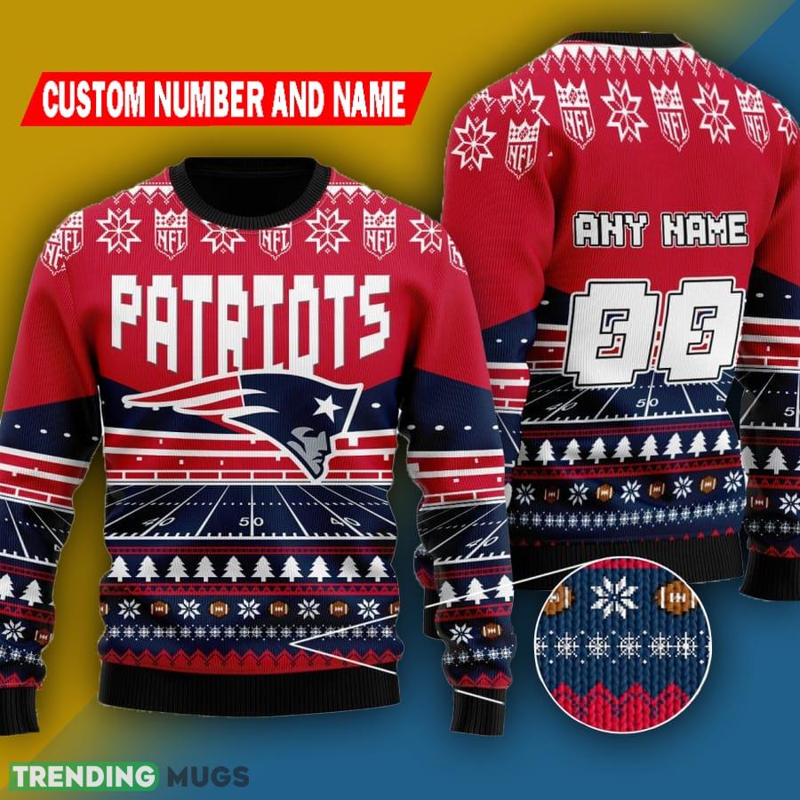 Custom Name Number Nfl New England Patriots Rugby Stadium Ugly Christmas Sweater