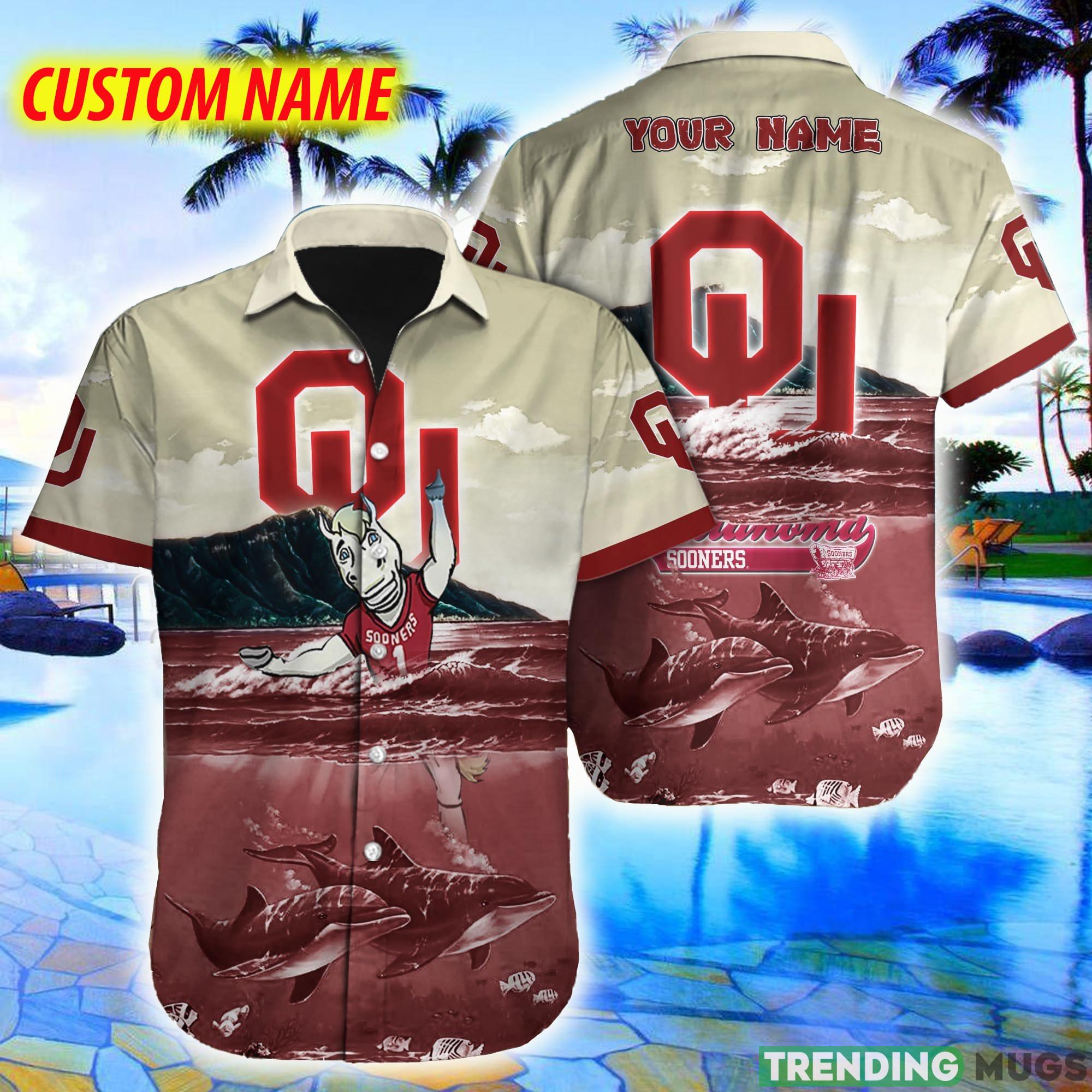 Custom Name Oklahoma Sooners NCAA Logo Dolphin Beach Funny Hawaiian Shirt – Custom Name Oklahoma Sooners NCAA Logo Dolphin Beach Funny Hawaiian Shirt