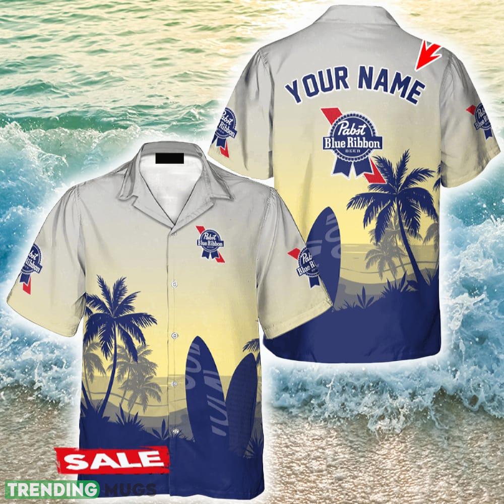 Custom Name Pabst Blue Ribbon Palm Tree Surfboard Hawaiian Shirt Beer Holidays Summer Details: