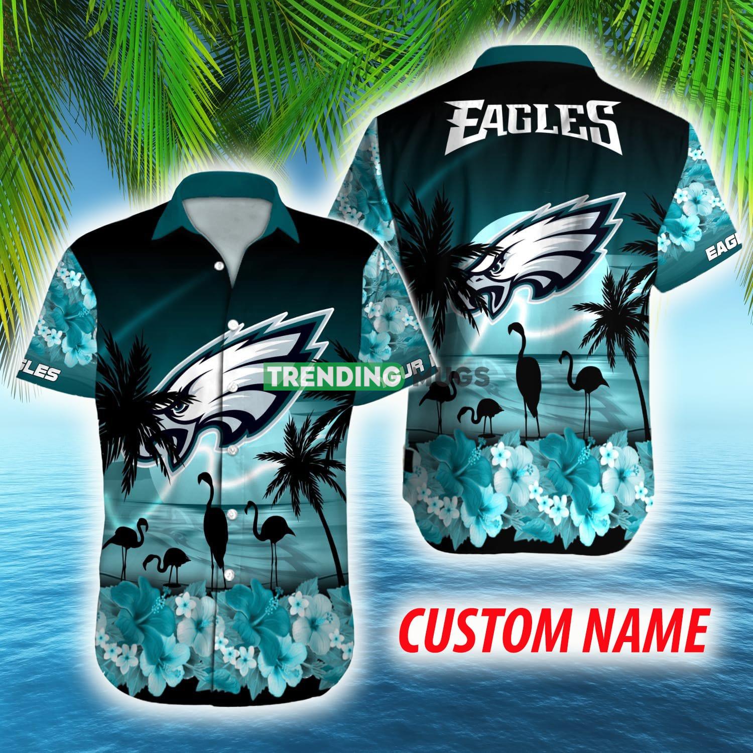 Custom Name Philadelphia Eagles NFL Flamingo Hibiscus For Men And Women Gift Fans Hawaiian Shirt Details: