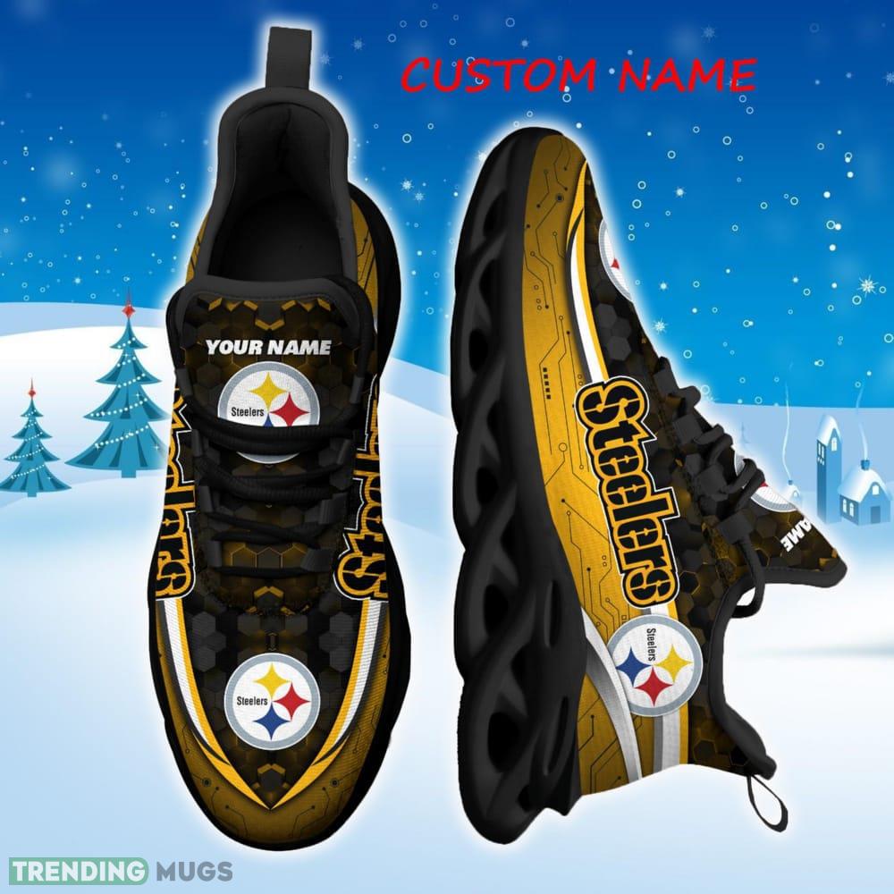 Get ready to show off your love for the Pittsburgh Steelers with our custom name NFL football team sports running shoes! Designed with the ultimate fan in mind, these Max Soul sneakers are the perfect gift for any die-hard Steelers supporter.