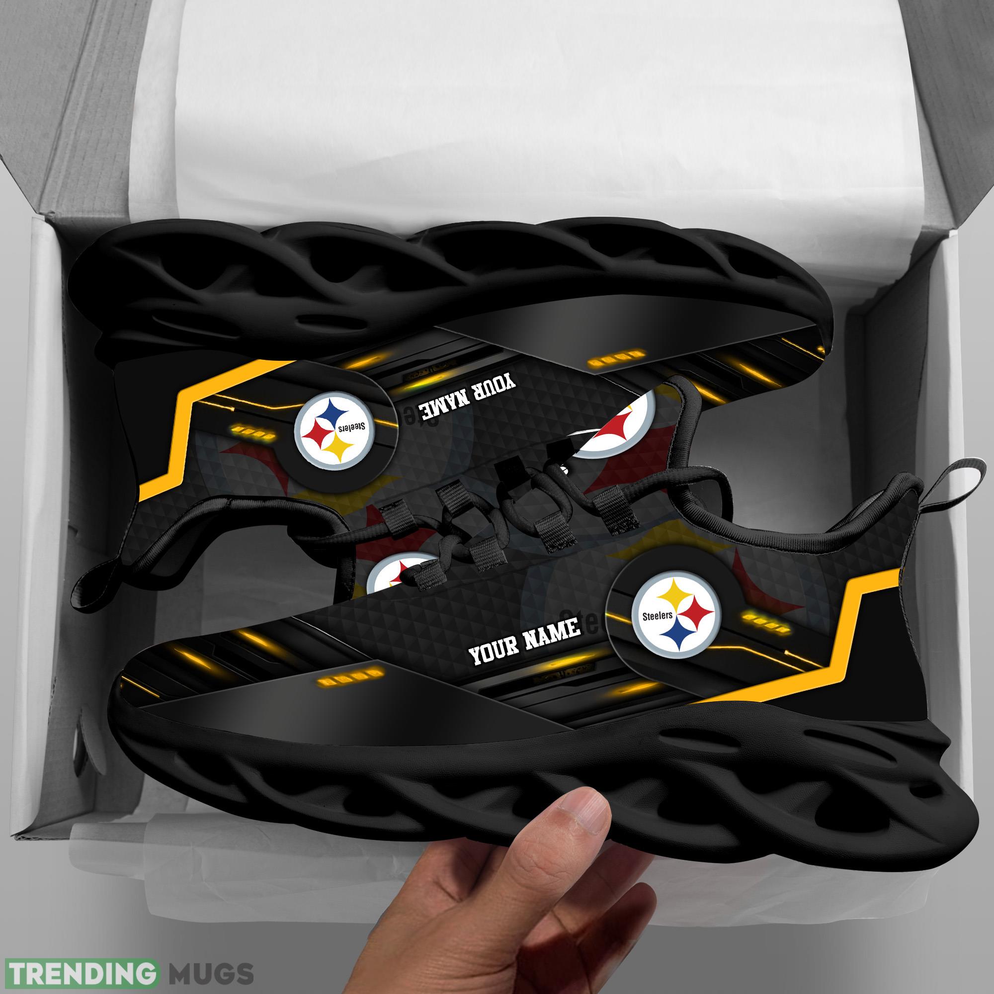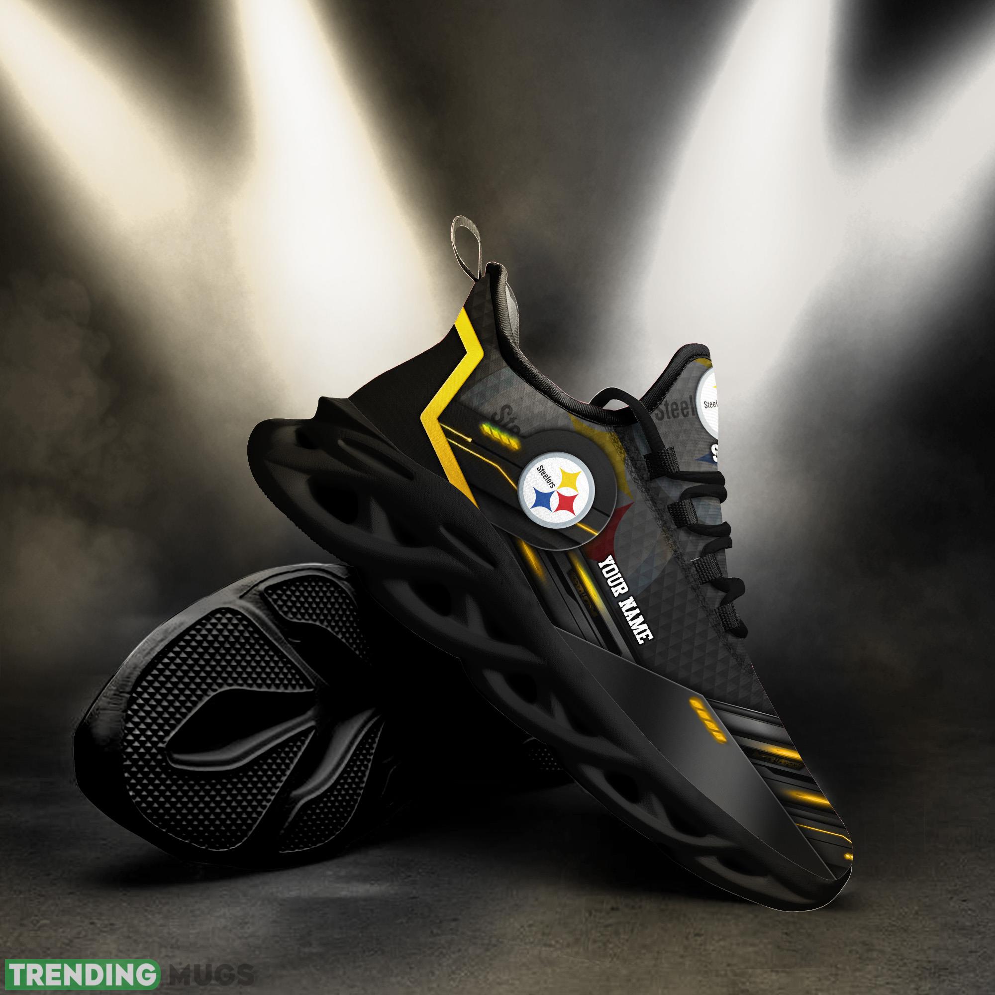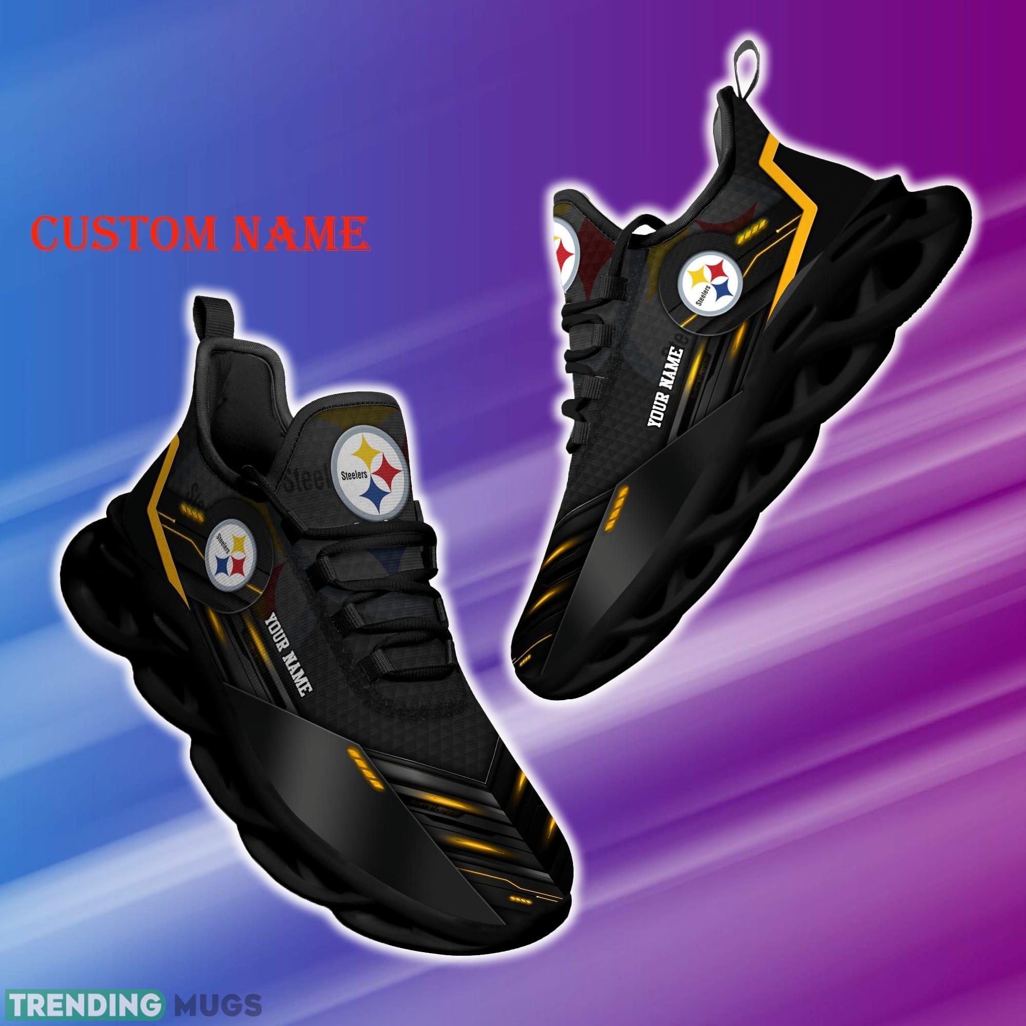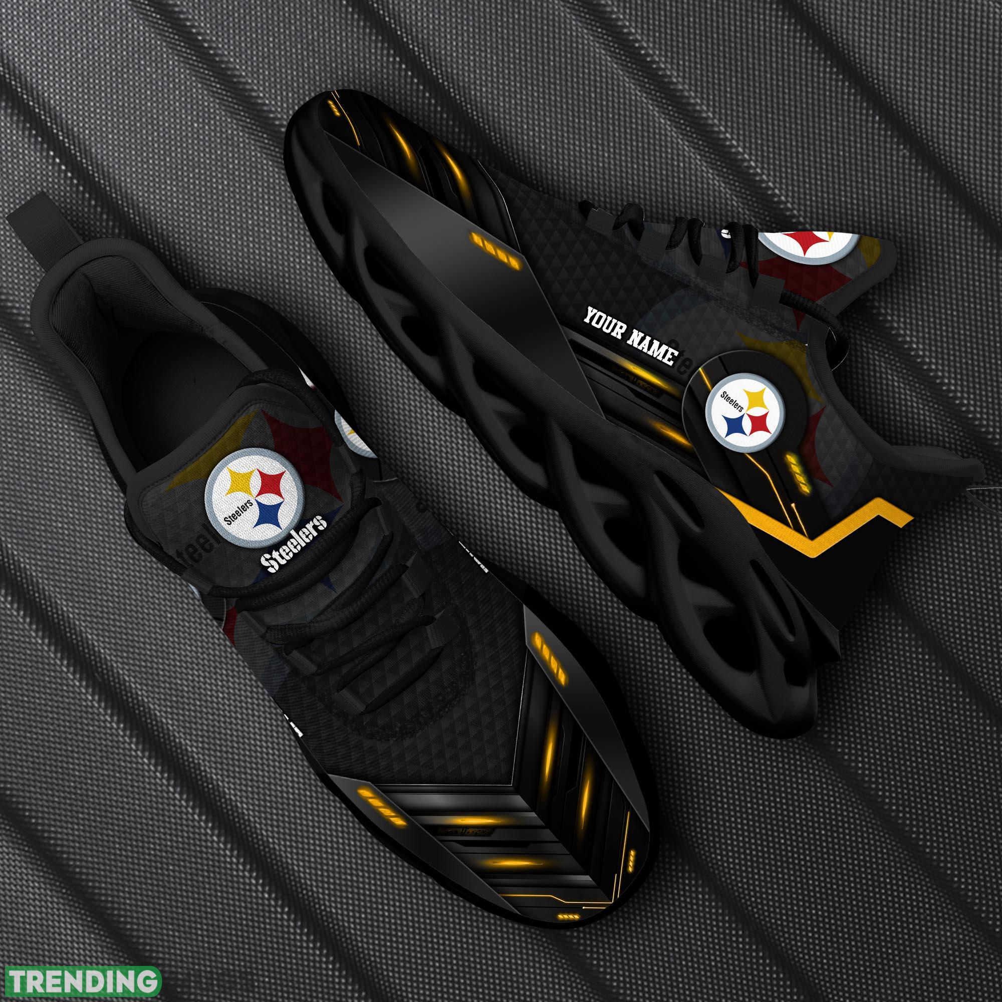 Some of the Custom Name Pittsburgh Steelers NFL Sport Black Max Soul Shoes Represent Gift Fans Running Sneakers New Shoes photos
