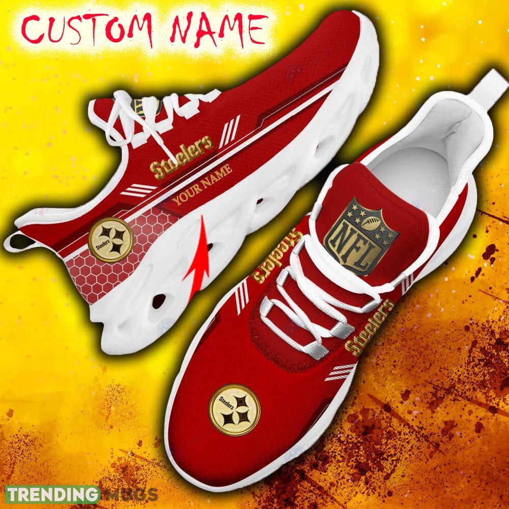 Custom Name Pittsburgh Steelers Red All Over Printed Max Soul Shoes For Fans Gift Men And Women New Sports Sneakers information: