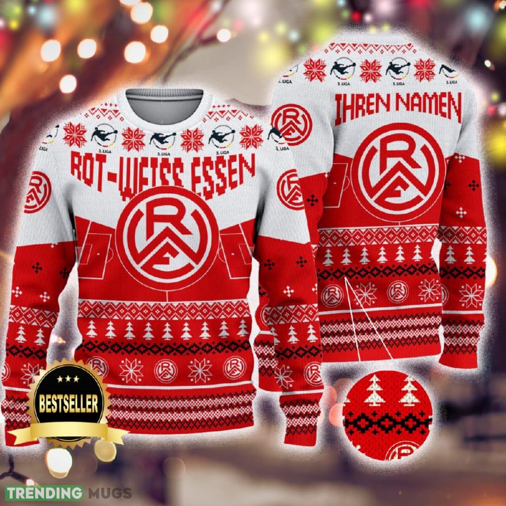 Get ready to spread some holiday cheer with the Custom Name Rot-Weiss Essen Ugly Christmas Sweater! This festive sweater is the perfect gift for both men and women who are die-hard fans of Rot-Weiss Essen.