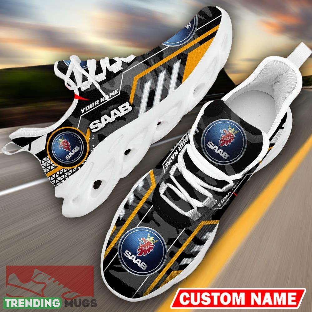 Custom Name Saab Automobile Logo Camo Black Max Soul Sneakers Racing Car And Motorcycle Chunky Sneakers information: