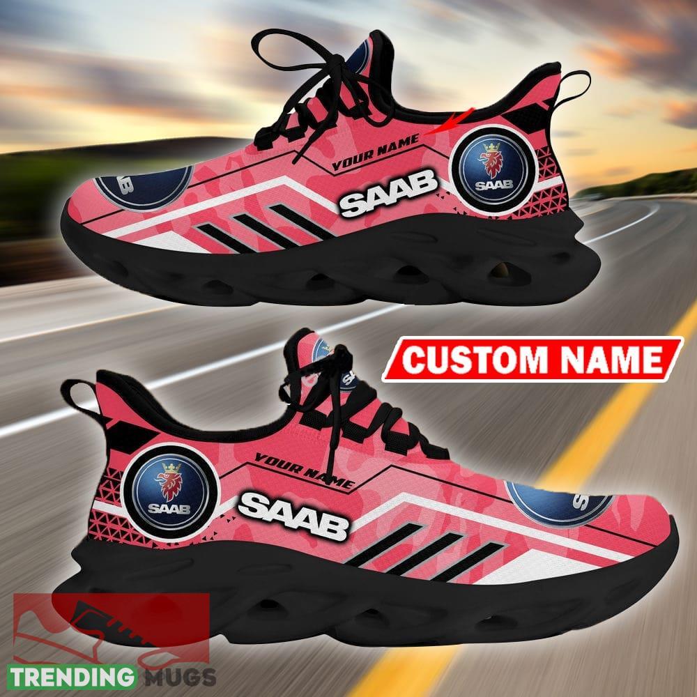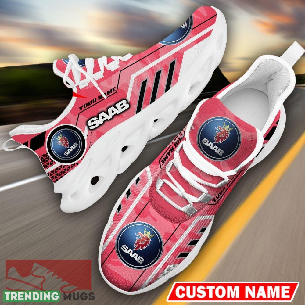 Custom Name Saab Automobile Logo Camo Pink Max Soul Sneakers Racing Car And Motorcycle Chunky Sneakers information: