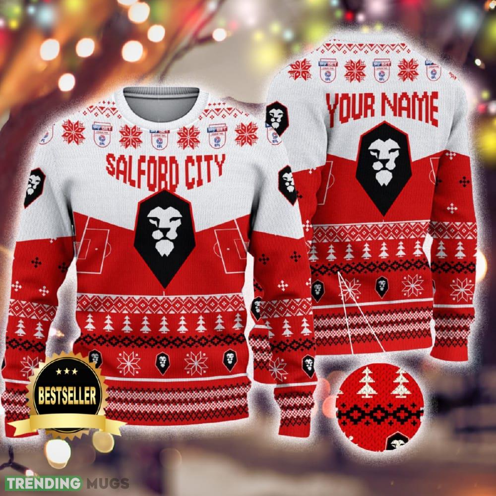 Get ready to show off your love for Salford City Football Club this holiday season with our Custom Name Salford City Ugly Christmas Sweater! Designed for both men and women fans, this festive sweater is the perfect gift to showcase your dedication to the team.