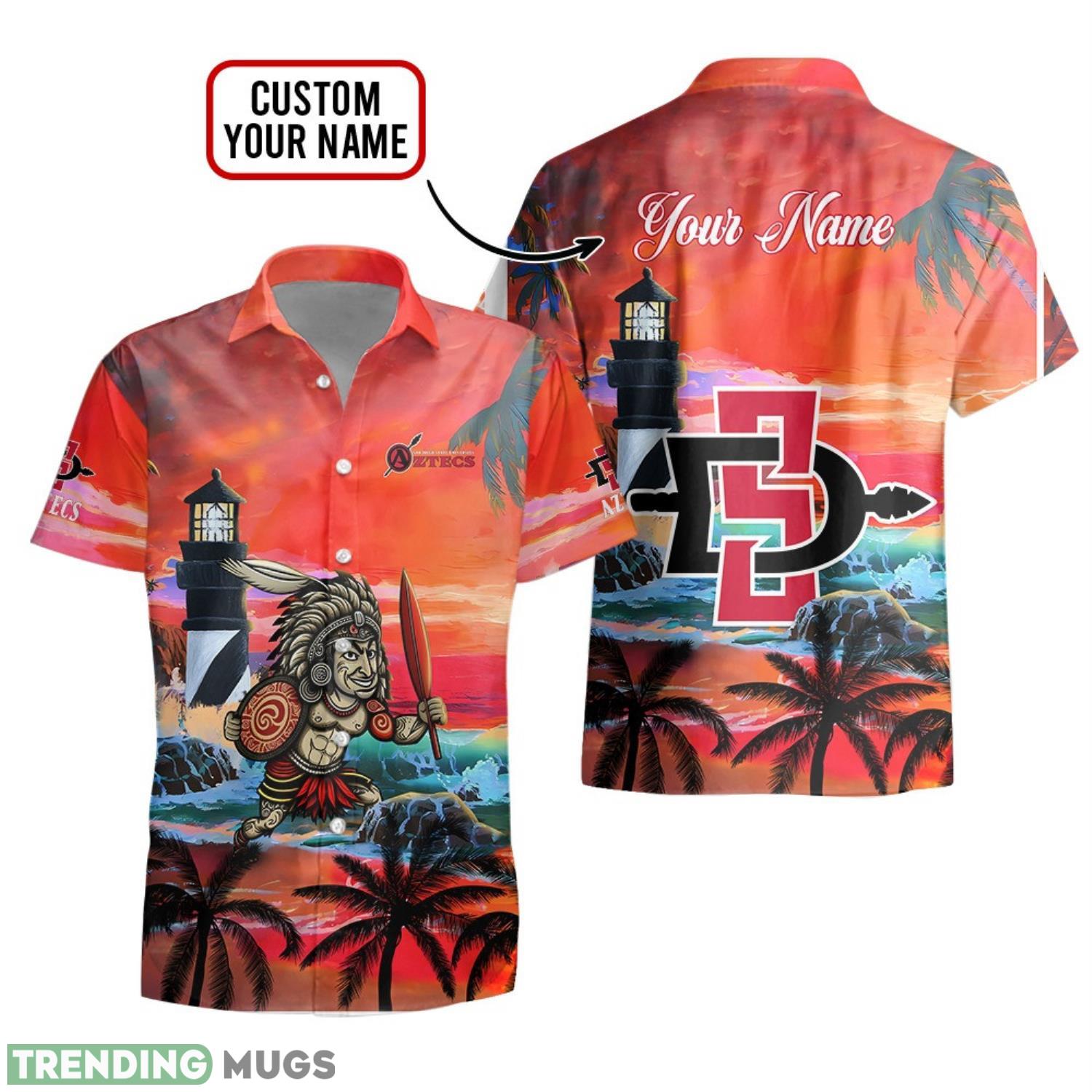 Custom Name San Diego State Aztecs Men’s Basketball Mascot Beach Pattern For Fans 3D Hawaiian Shirt Summer Sport Gift Details: