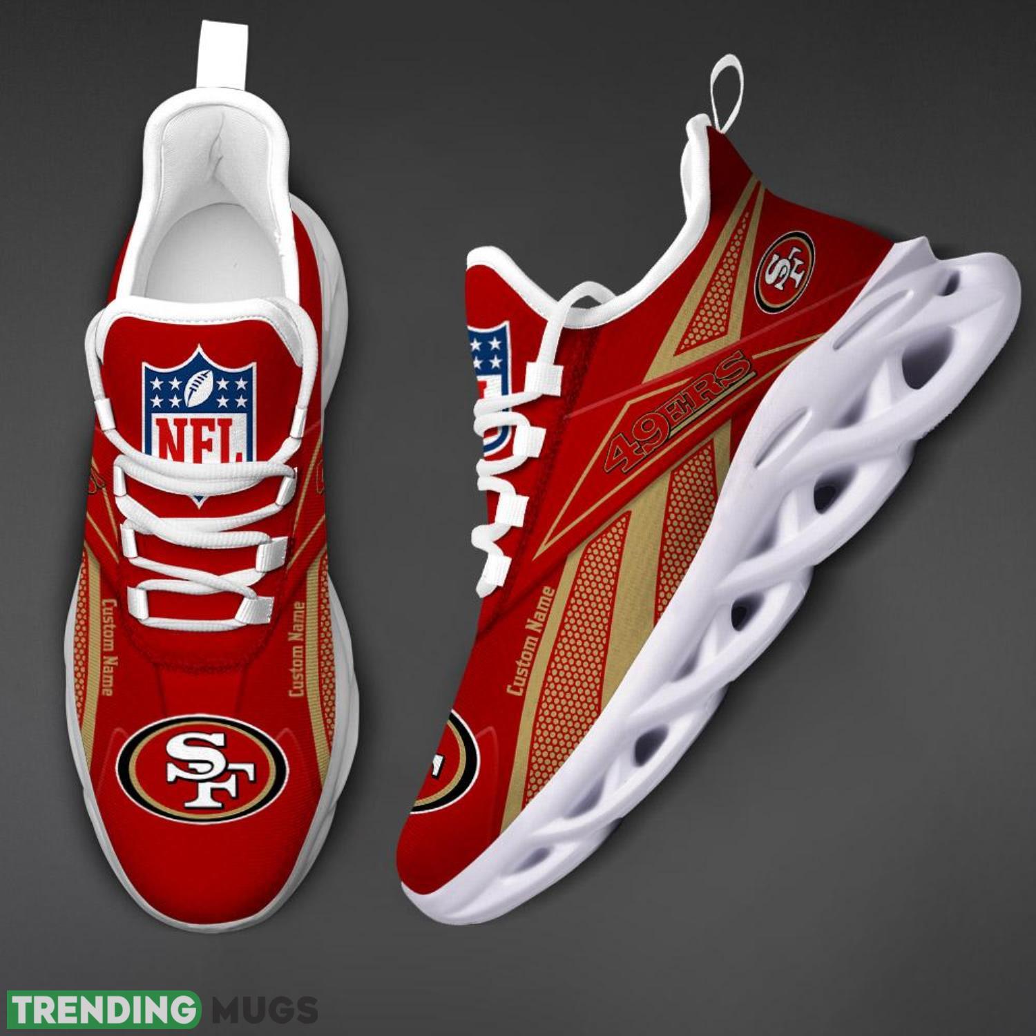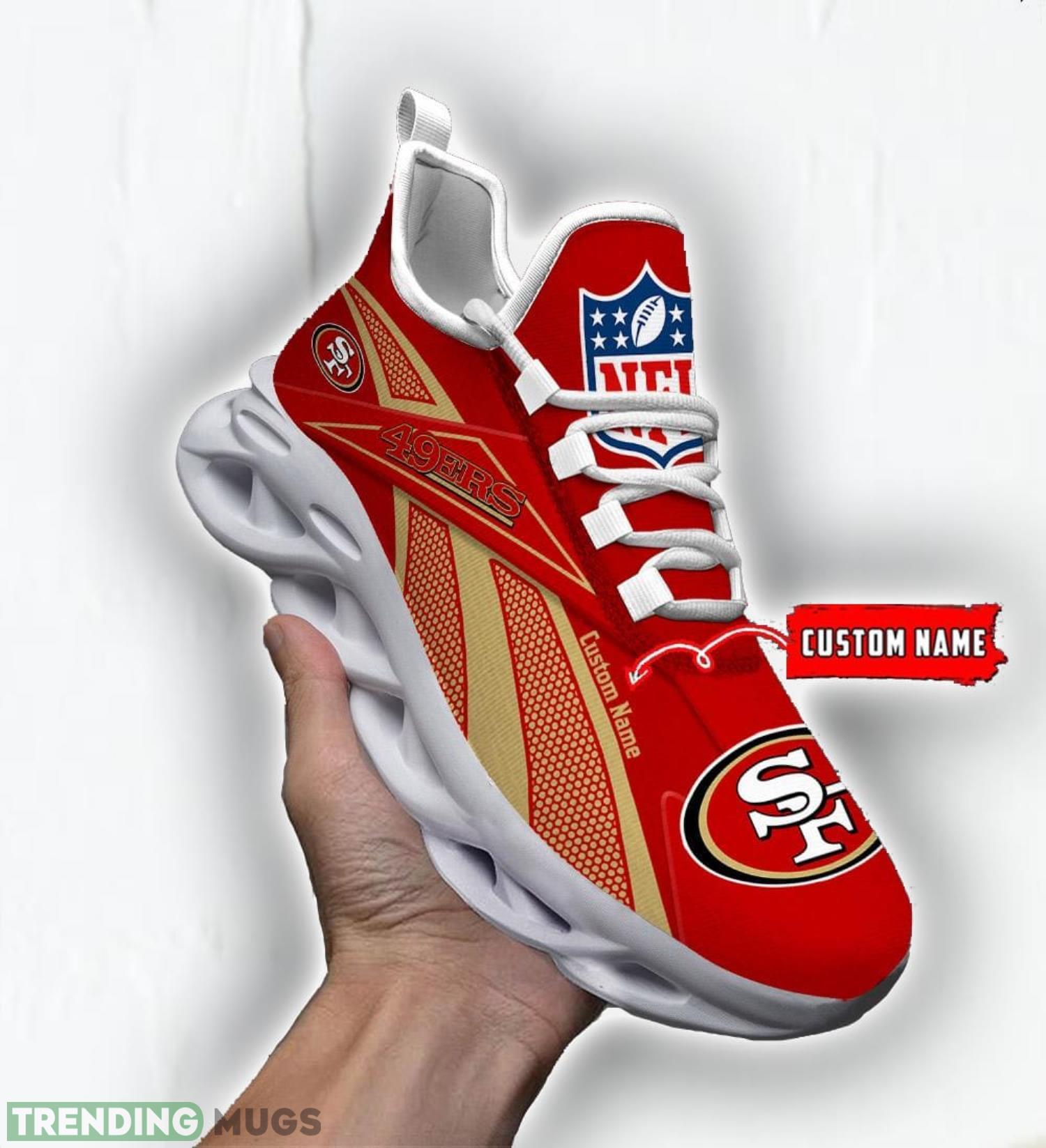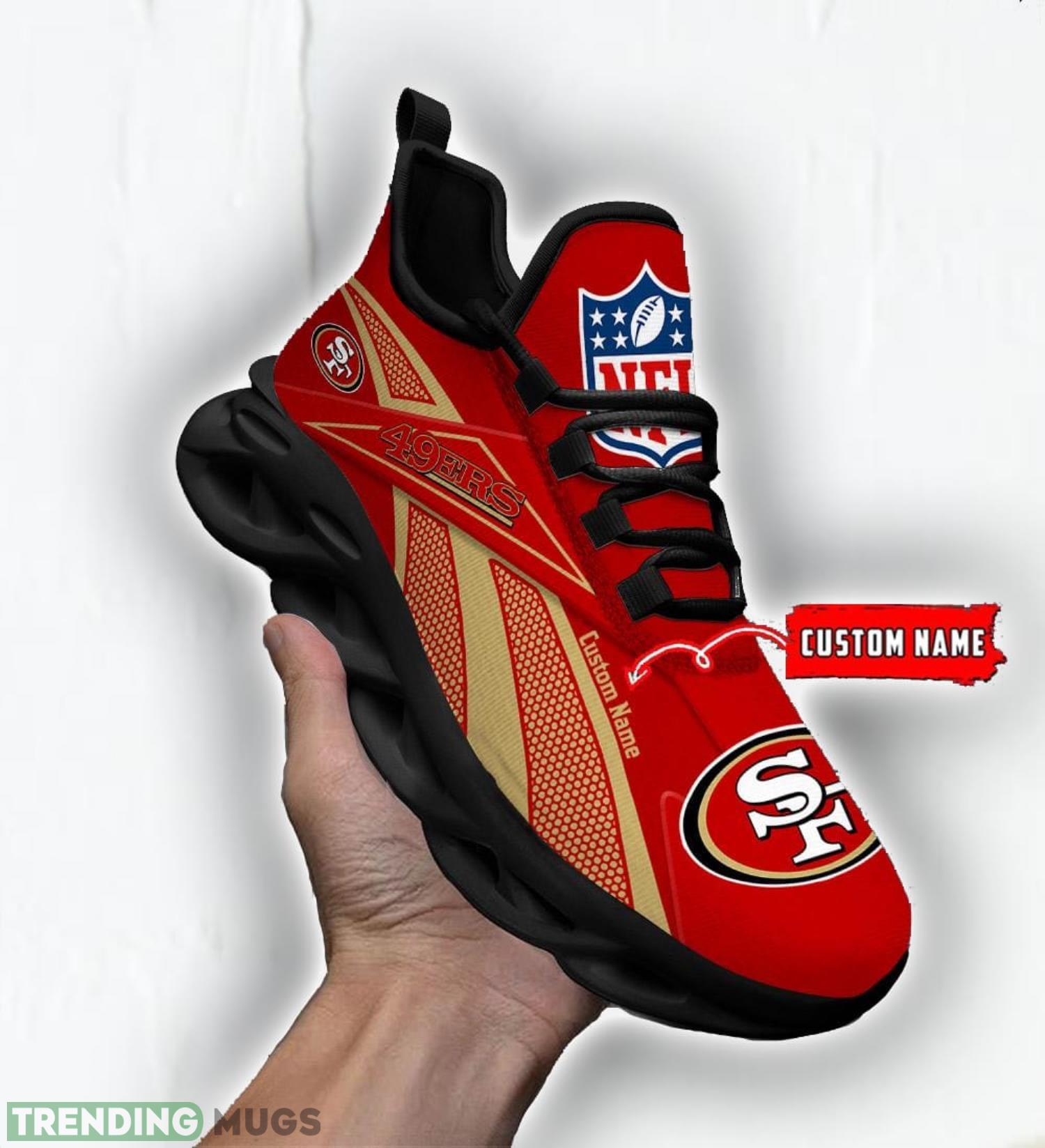 Stand out from the crowd with our Custom Name San Francisco 49ers Logo Team Sport Sneakers Max Soul Shoes For Fans! Designed exclusively for die-hard 49ers supporters like you, these sneakers combine comfort, style, and team spirit like never before.