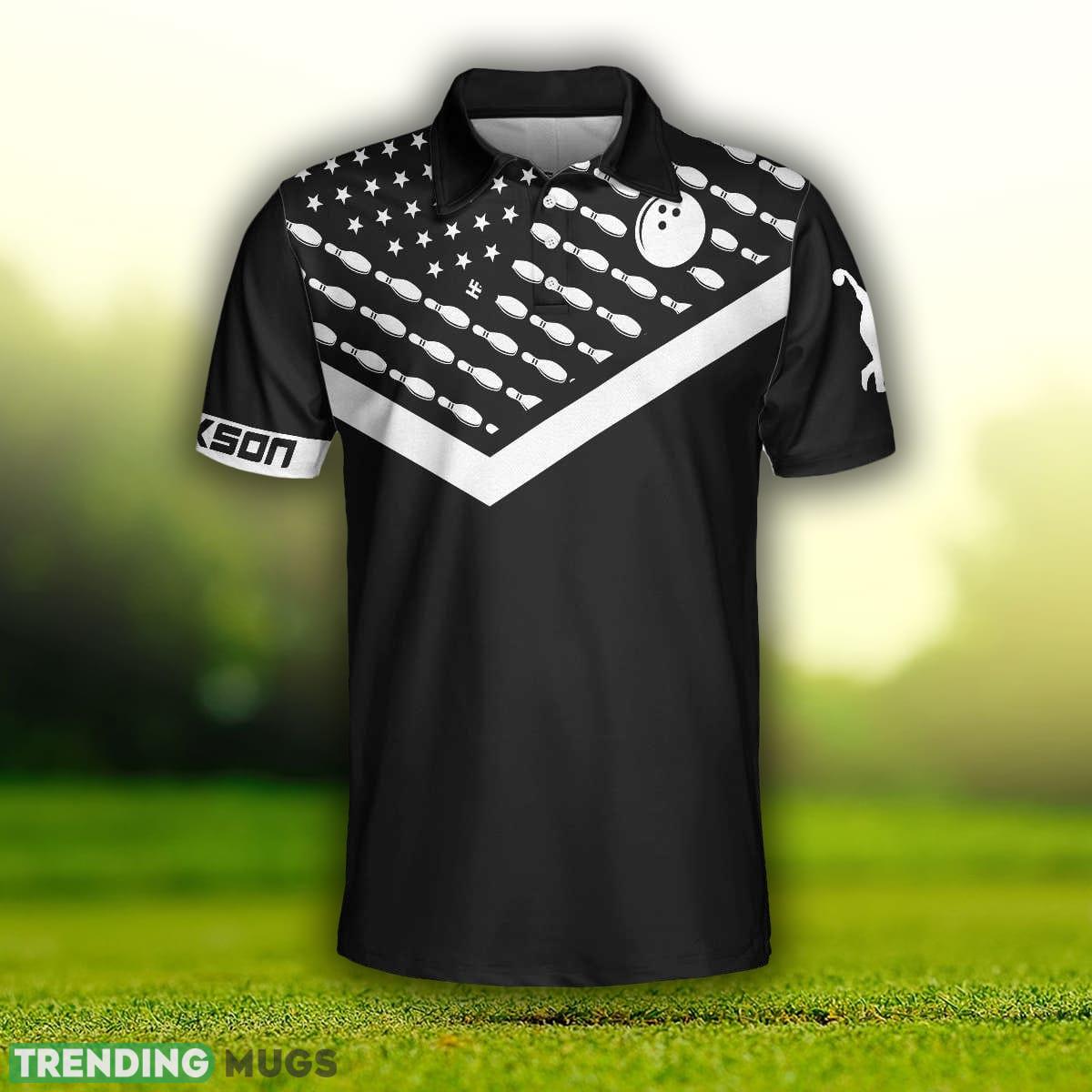 Custom Name Spear Swear Drink Repeat Bowling, Black American Flag Bowling Shirt Polo Shirt Information: