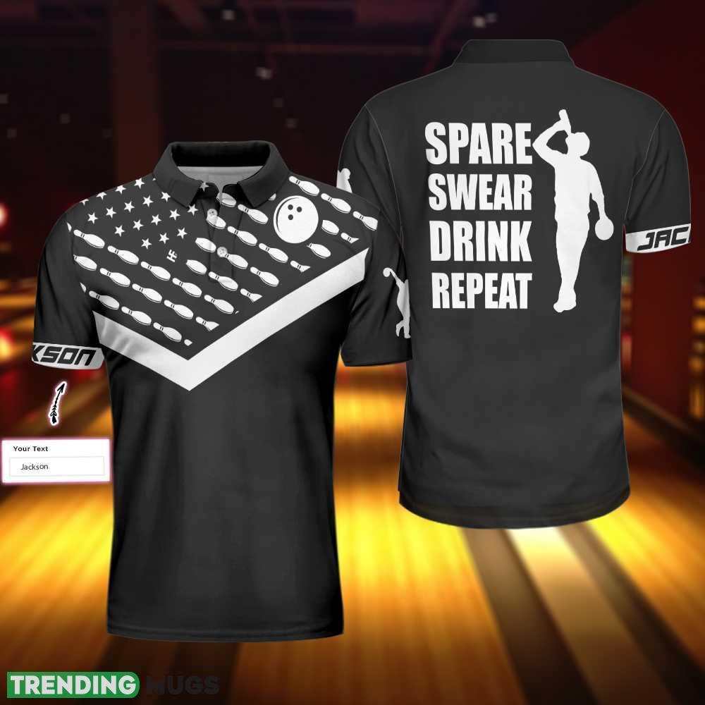 Custom Name Spear Swear Drink Repeat Bowling, Black American Flag Bowling Shirt Polo Shirt – Spear Swear Drink Repeat Bowling Custom Polo Shirt, Personalized Black American Flag Bowling Shirt For Men_1