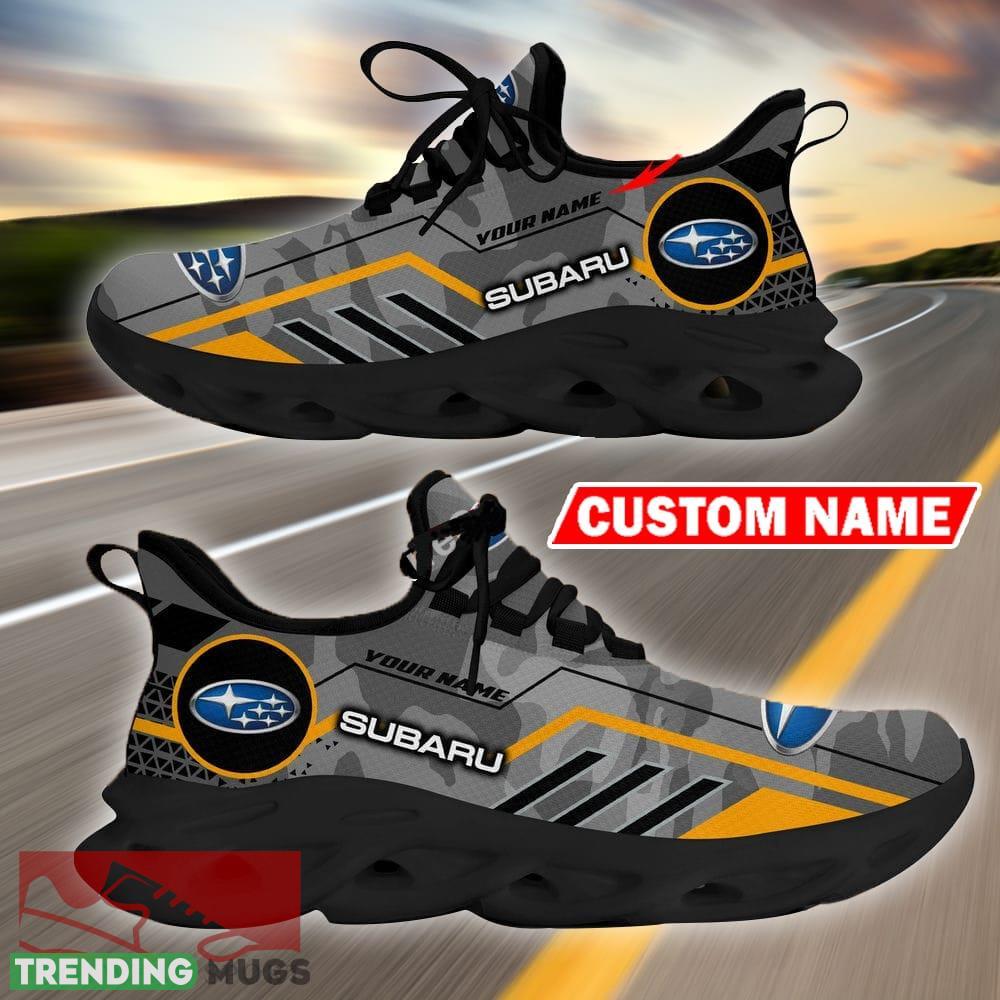 Custom Name Subaru Logo Camo Grey Max Soul Sneakers Racing Car And Motorcycle Chunky Sneakers Max Soul