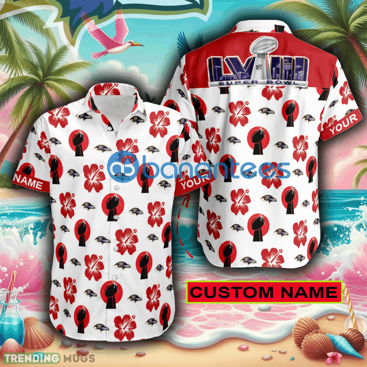 Custom Name Super Bowl 2024 Baltimore Ravens White Hawaiian Shirt Trends For Men Women Gift Details: