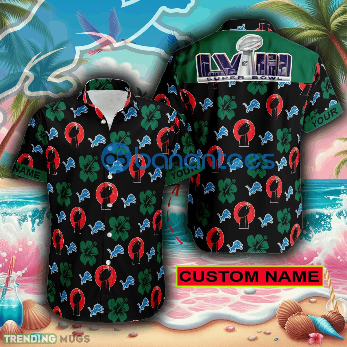 Custom Name Super Bowl 2024 Detroit Lions Black Hawaiian Shirt Trends For Men Women Gift Details: