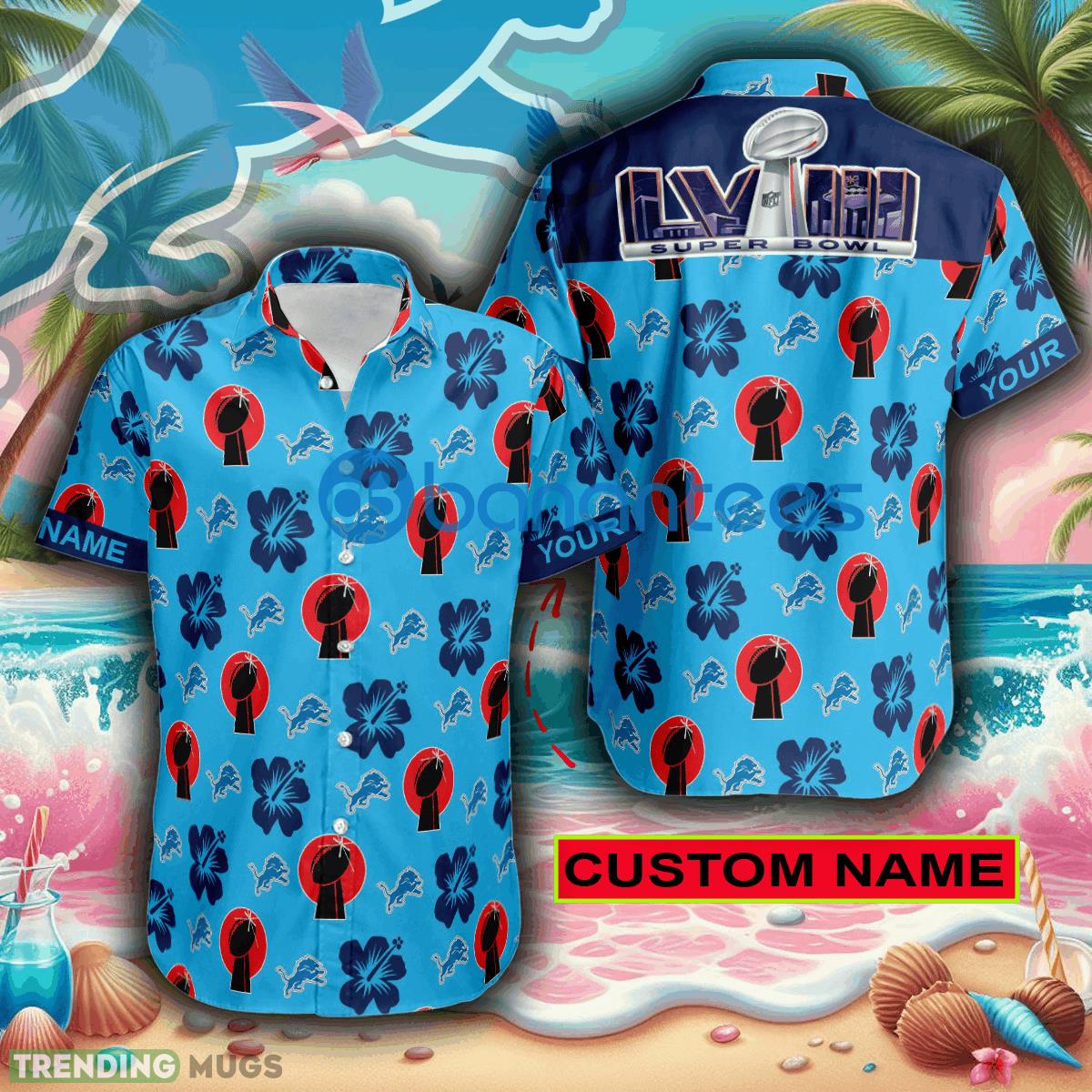 Custom Name Super Bowl 2024 Detroit Lions Blue Hawaiian Shirt Trends For Men Women Gift Details: