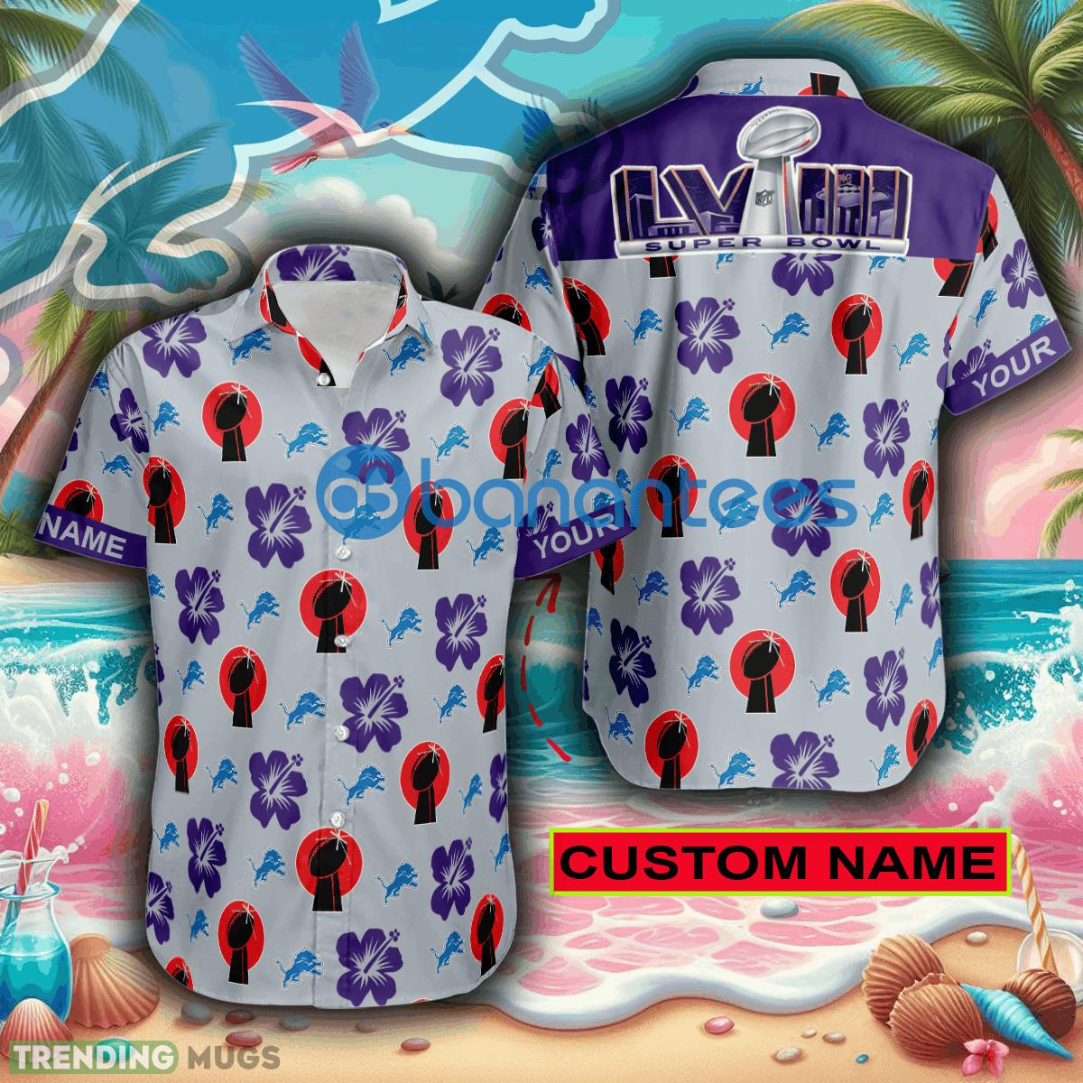 Custom Name Super Bowl 2024 Detroit Lions Grey Hawaiian Shirt Trends For Men Women Gift Details: