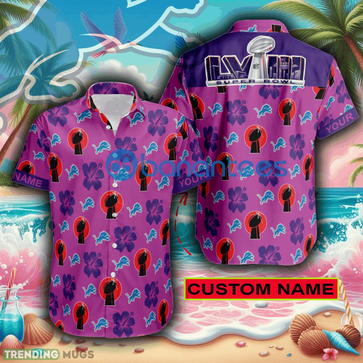 Custom Name Super Bowl 2024 Detroit Lions Pink Hawaiian Shirt Trends For Men Women Gift Details: