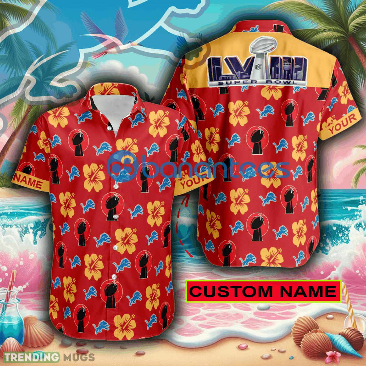 Custom Name Super Bowl 2024 Detroit Lions Red Hawaiian Shirt Trends For Men Women Gift Details: