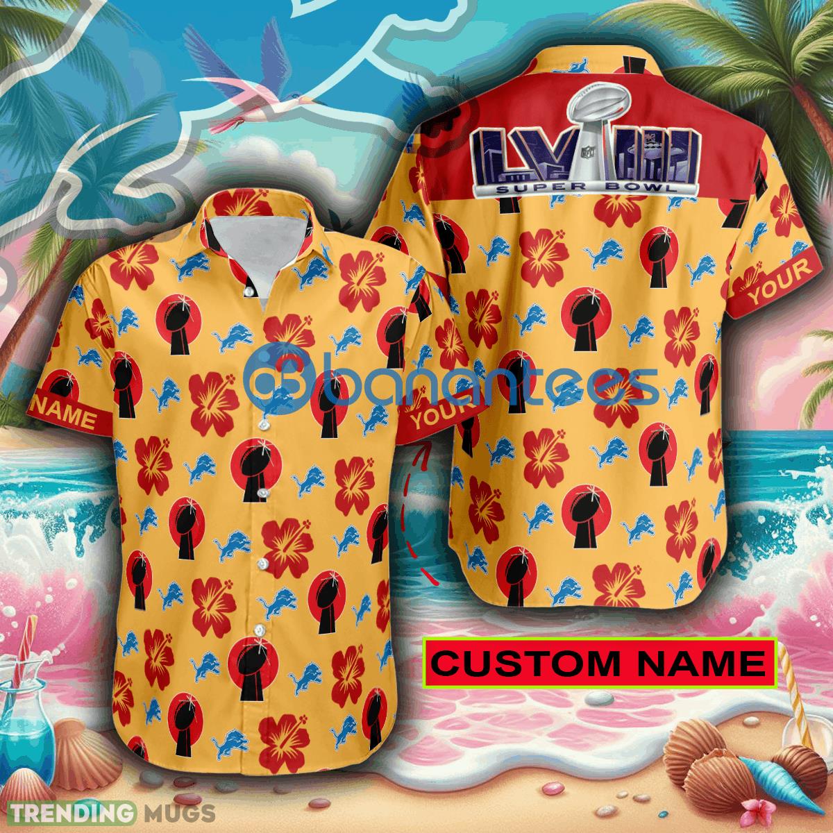 Custom Name Super Bowl 2024 Detroit Lions Yellow Hawaiian Shirt Trends For Men Women Gift Details: