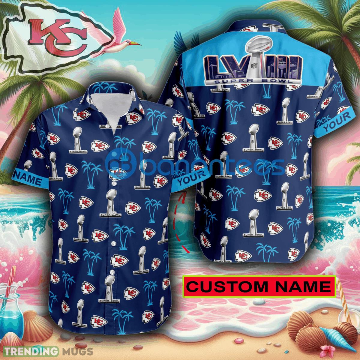 Custom Name Super Bowl LVIII Kansas City Chiefs Navy Hawaiian Shirt Trends For Men Women Gift - Custom Name Super Bowl LVIII Kansas City Chiefs Navy Hawaiian Shirt Trends For Men Women Gift
