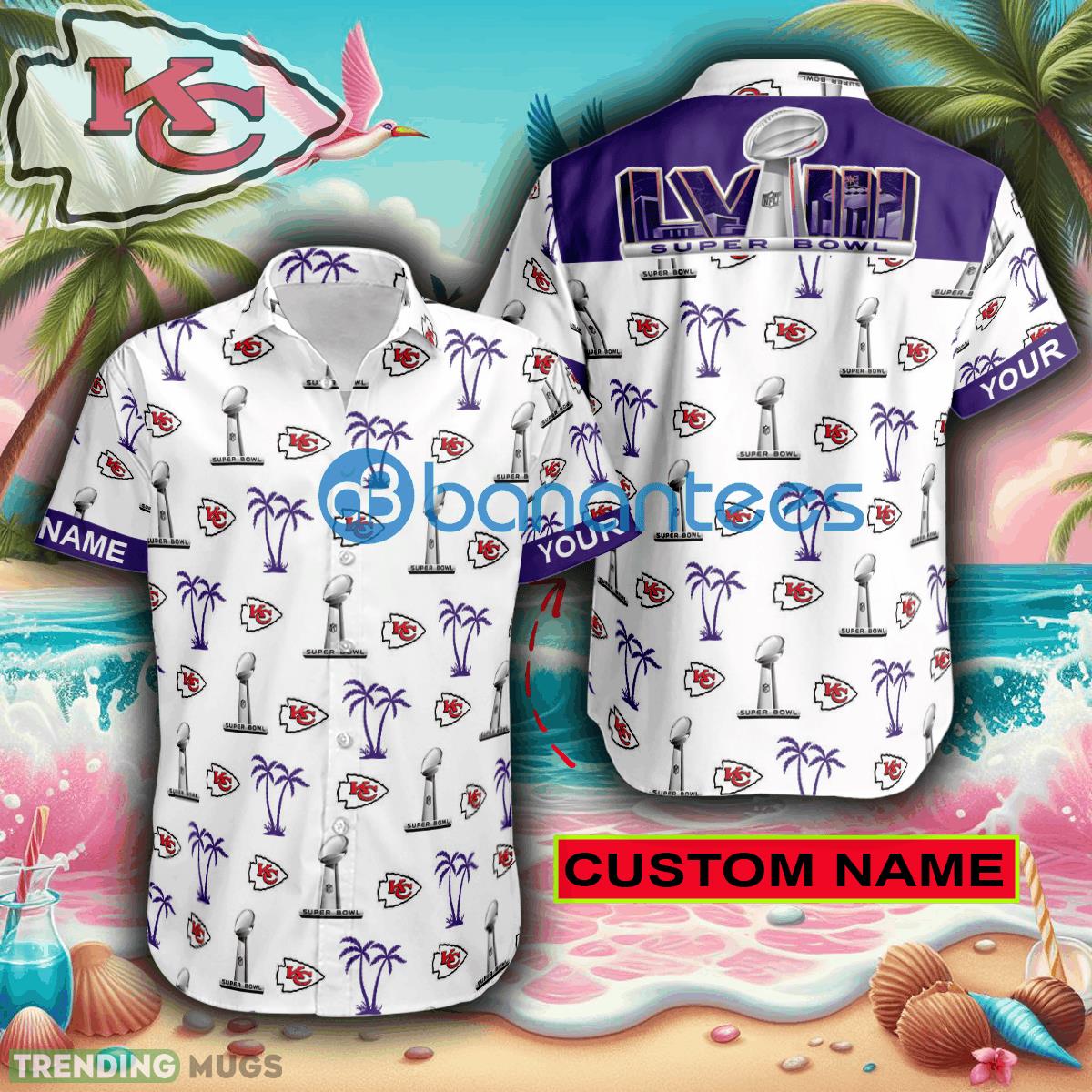 Custom Name Super Bowl LVIII Kansas City Chiefs White Hawaiian Shirt Trends For Men Women Gift Hawaiian Shirt