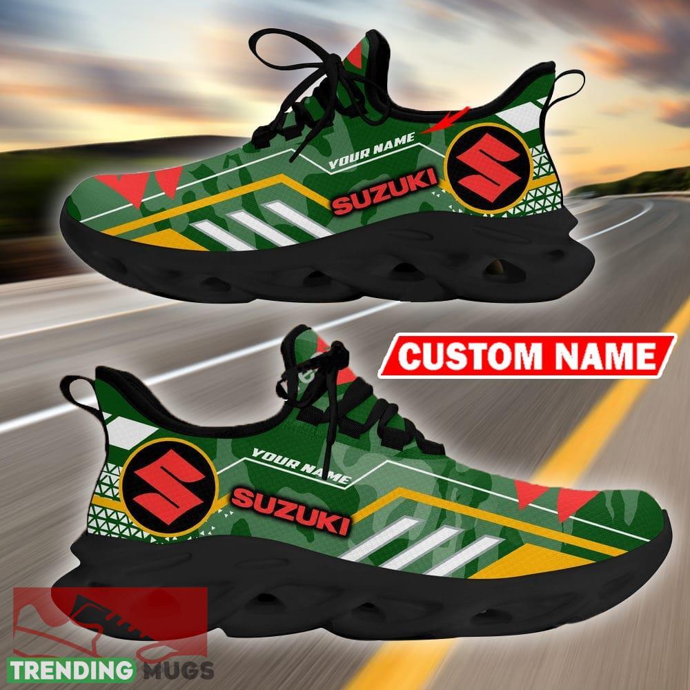 Custom Name Suzuki Logo Camo Green Max Soul Sneakers Racing Car And Motorcycle Chunky Sneakers information: