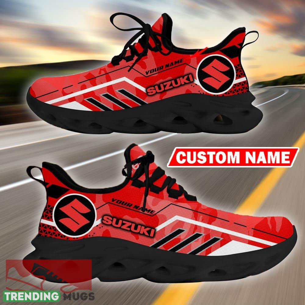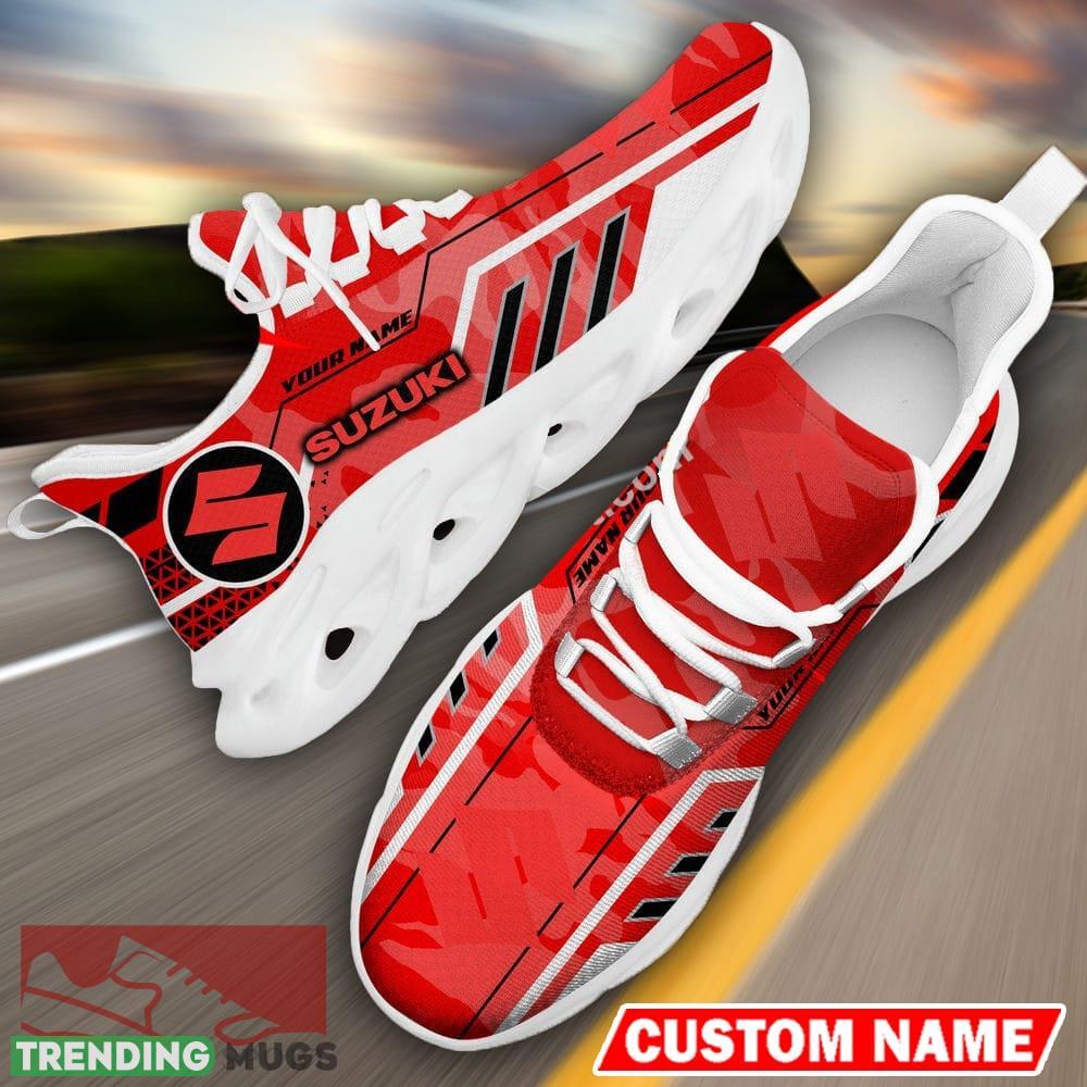 Custom Name Suzuki Logo Camo Red Max Soul Sneakers Racing Car And Motorcycle Chunky Sneakers information: