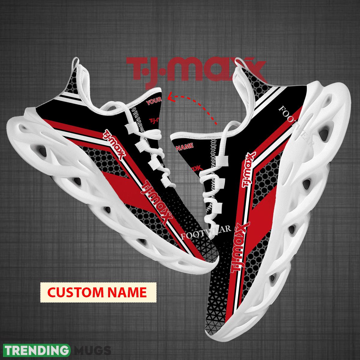 Get ready to hit the ground running in style with our Custom Name T.J. Maxx Logo Max Soul Shoes! These sneakers are perfect for big fans of T.J. Maxx who want to show off their love for the brand while staying comfortable on the go. Whether you’re hitting the gym or just running errands, these shoes are sure to make a statement. They also make a great gift for any T.J. Maxx enthusiast in your life. Don’t miss out on these one-of-a-kind sneakers – order yours today!