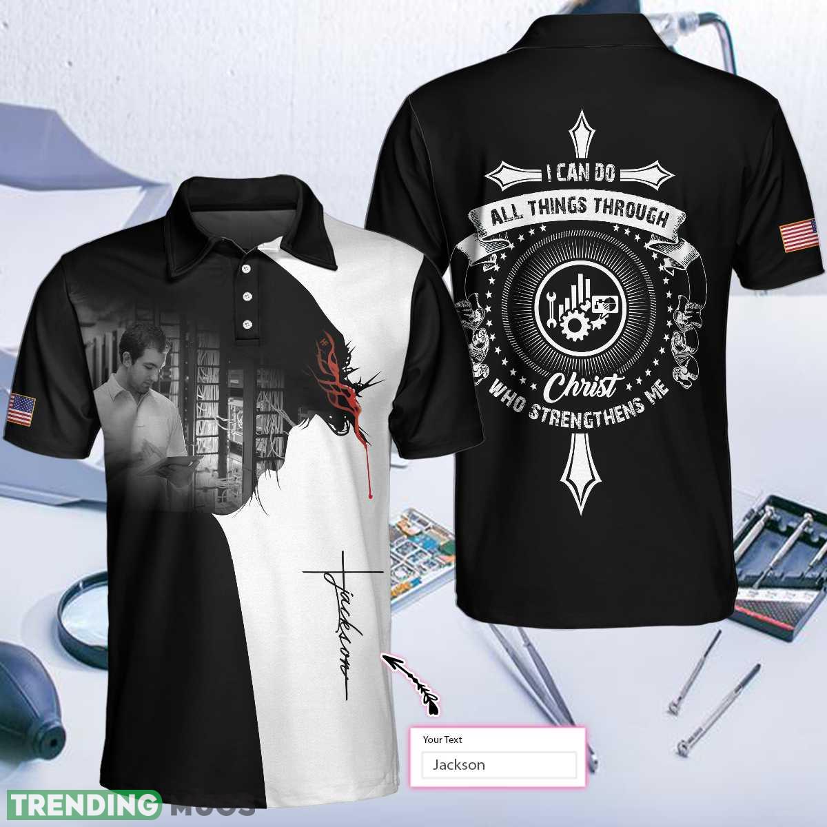 Custom Name Technician I Can Do All Things, American Flag Technician Shirt Polo Shirt Information: