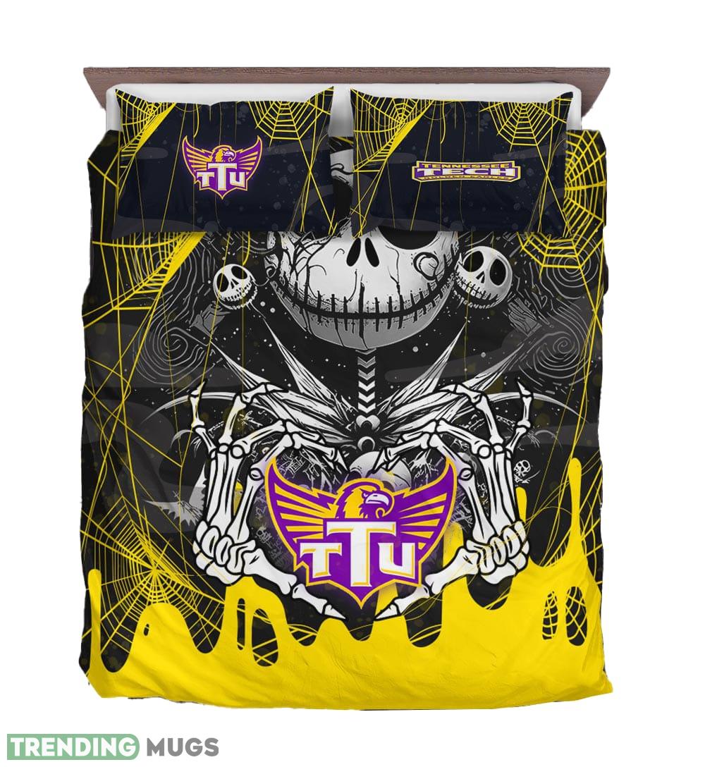 Upgrade your bedroom and embrace the magic of the season by ordering your Custom Name Tennessee Tech Golden Eagles Jack Skellington Halloween Nightmare-3D Quilt Set today!