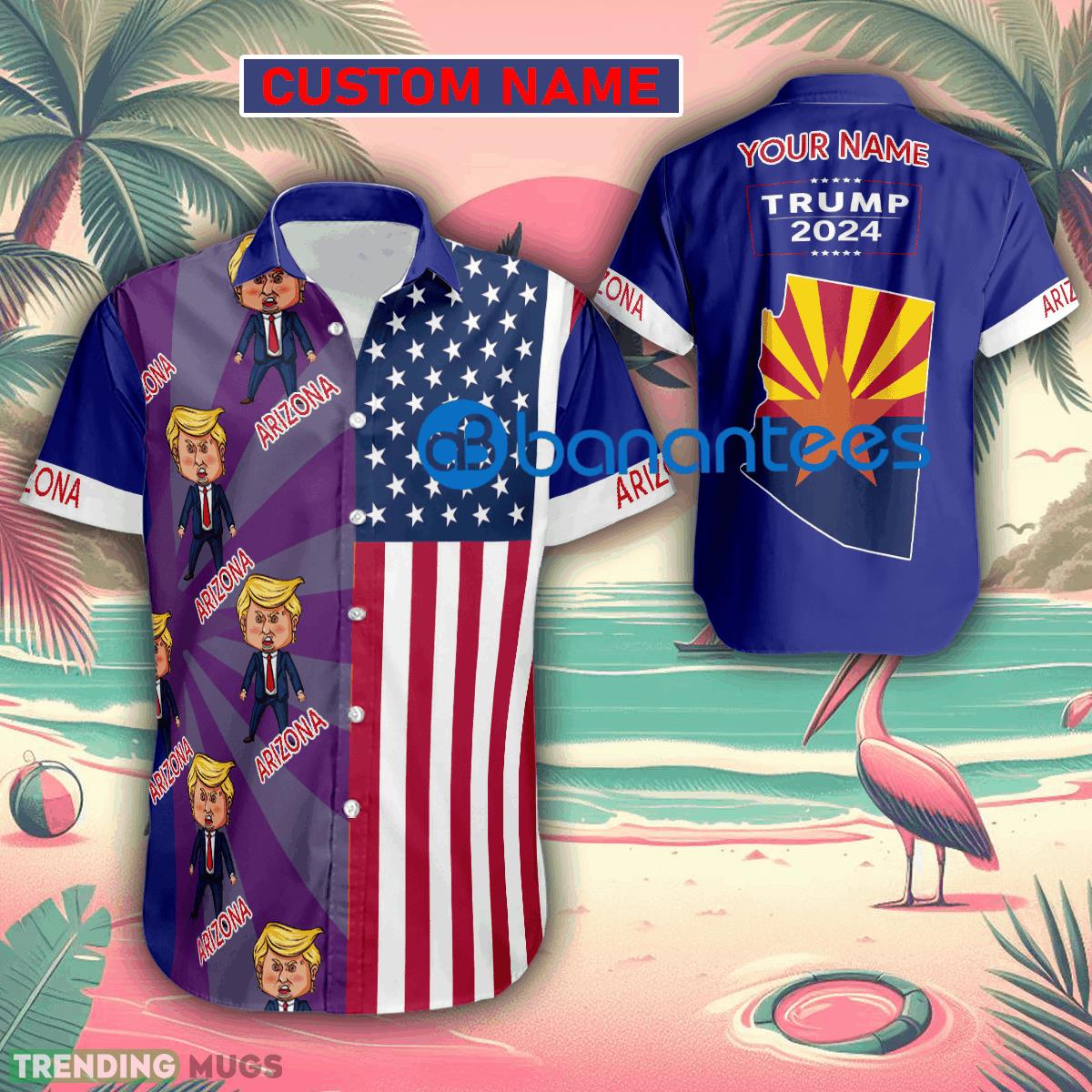 Custom Name Trump Angry Arizona Hawaiian Shirt Baby Trump Pointing USA Flag Gift For Fans Trump Votes Details: