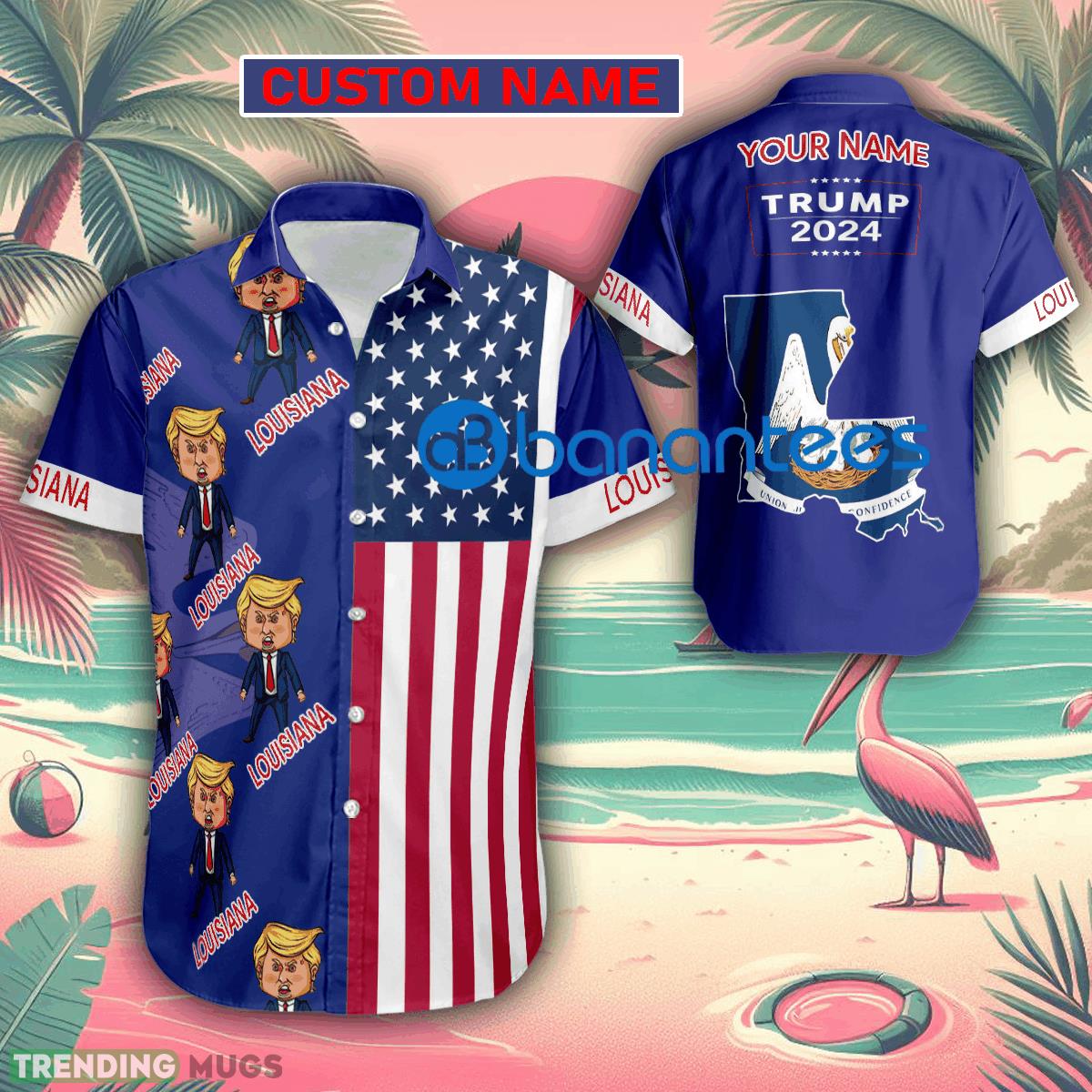 Custom Name Trump Angry Louisiana Hawaiian Shirt Baby Trump Pointing USA Flag Gift For Fans Trump Votes Details: