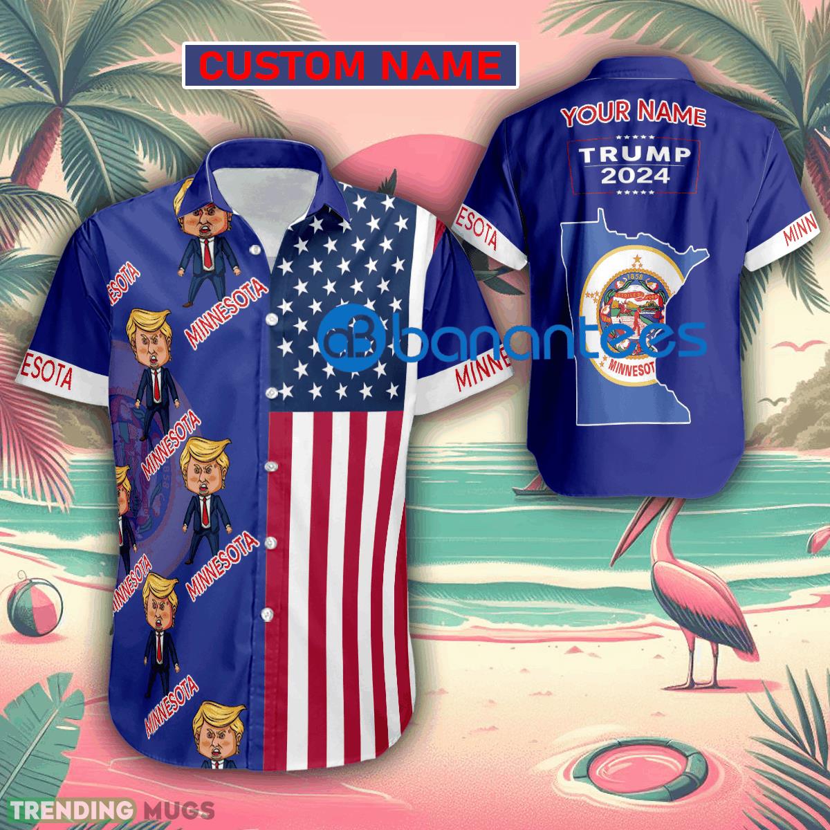 What sets this shirt apart is the option to customize it with your own name! Imagine sporting a Hawaiian shirt with your name alongside the iconic Trump imagery. It’s the ultimate way to show off your pride and support for both Trump and Minnesota.